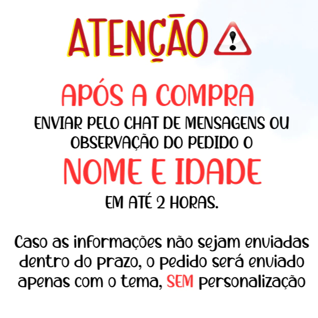 ******* ANTES DE COMPRAR LEIA COM ATENÇÃO******* 📦 O QUE VOCÊ VAI RECEBER NO SEU KIT: ✔️ Adesivos para marmitinha embalagem flip tamanho 6x9. ✨ PERSONALIZAÇÃO: • Após a compra, envie o TEMA, NOME IDADE da criança pelo Box de mensagens, quanto antes enviar, mais rápido é a produção e o envio. • QUER MUDAR ALGO? Fale com a gente no chat. • Só enviamos arte para aprovação de temas que não estão no nosso catálogo ainda ou se for preciso mudar algo. • Temos mais de 100 temas disponíveis! 🚚 FRETE E PRAZO: • Calcule o prazo de entrega direto no anúncio informando seu CEP, verifique o prazo de PRODUÇÃO+ENTREGA para garantir que o pedido chegue a tempo do evento. • Garanta que seu endereço esteja correto antes de finalizar o pedido. ⚠️ IMPORTANTE: 🗨️ Se precisar de qualquer orientação ou tiver dúvidas, entre em contato conosco, será um prazer te atender! Não encontrou o tema que deseja? Nos envie uma mensagem que faremos ele pra você! 💥 GARANTA UMA FESTA INESQUECÍVEL! Personalize do seu jeitinho e surpreenda os convidados! 🛒 Clique em “Comprar agora” e monte o kit personalizado dos sonhos!