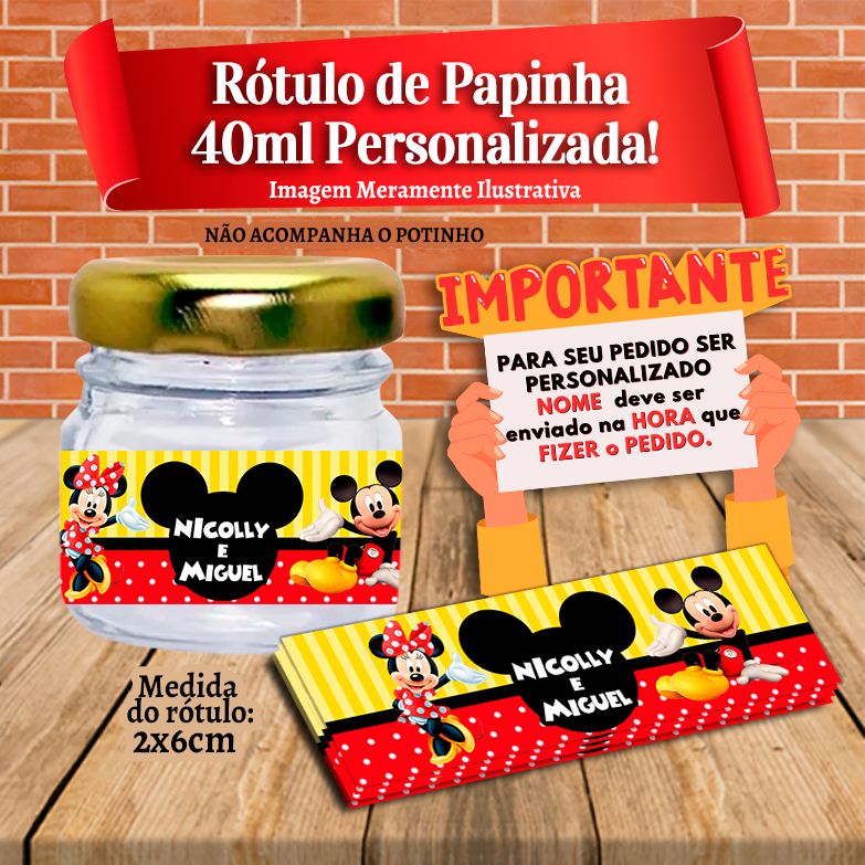 Rótulos adesivos para Papinhas 40ml 40g Mickey - Minnie - Minnie Confeiteira