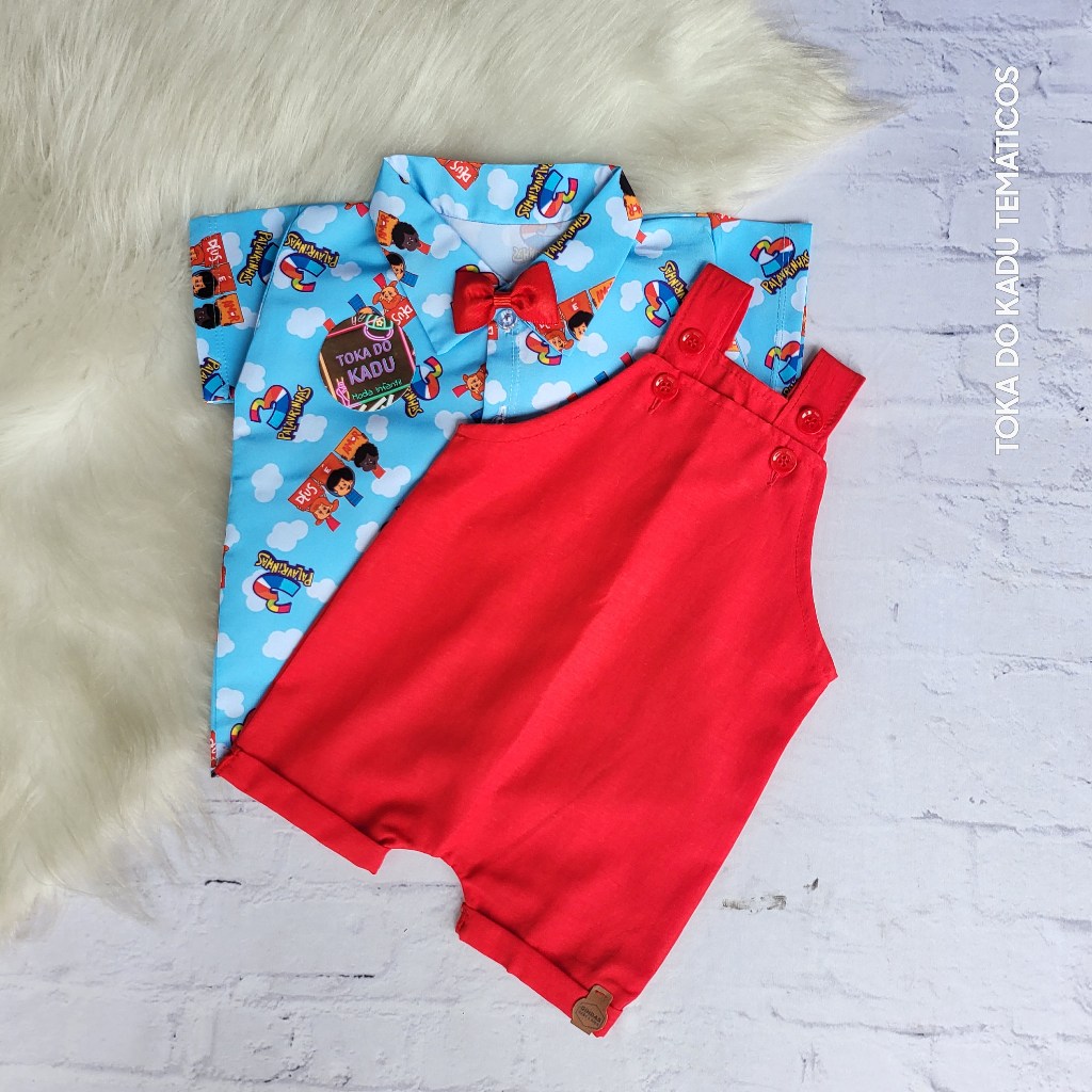 Roupa 3 palavrinhas Menino 2 Peças Jardineira + Camisa Três Palavrinhas