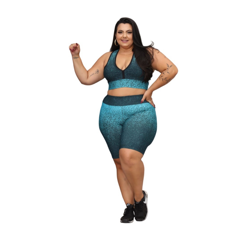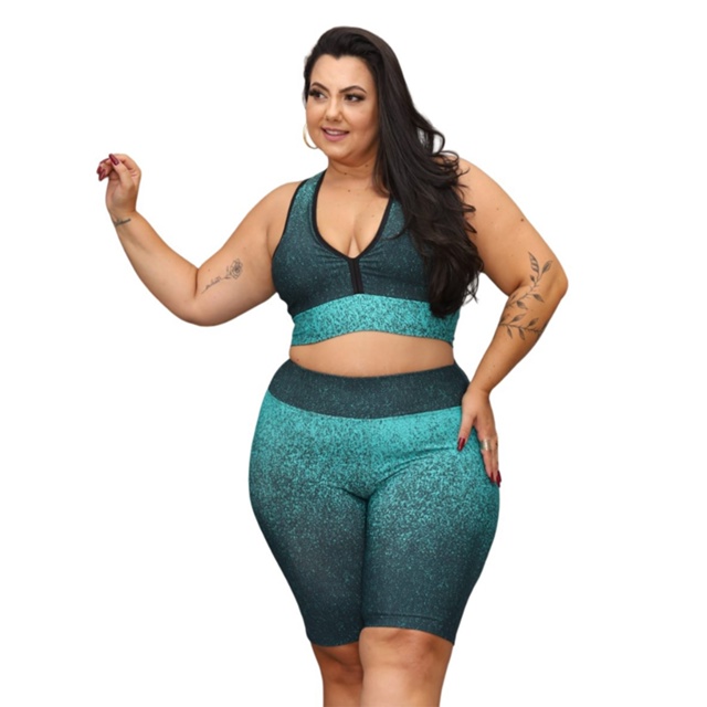 Roupa Academia Plus Size Top e Bermuda Degrade