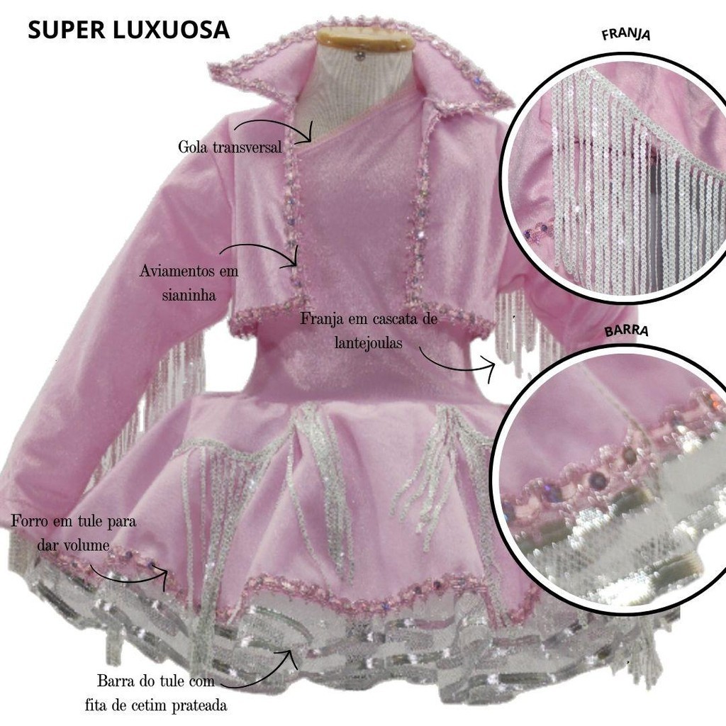 Roupa Ana Castela Infantil Rosa de Luxo Jaqueta Com Franja e Vestido Cowgirl