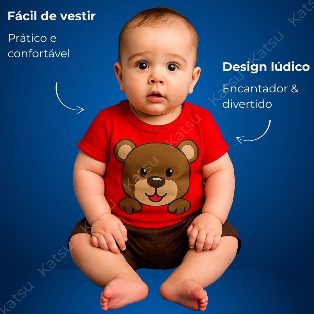 Apresentamos nosso adorável Conjunto Infantil com Estampas Lindíssimas, uma peça única pensada para unir conforto, praticidade e estilo para os primeiros meses do seu bebê. Com um design encantador, o conjunto é composto por um short e um blusa, criando um visual fofo e moderno ao mesmo tempo. Confeccionado com tecido macio e resistente, este look proporciona liberdade de movimento para os pequenos explorarem o mundo com conforto. Ideal para passeios, ensaios fotográficos ou até mesmo o dia a dia em casa com muito charme. Benefícios do Produto 👶 Conforto garantido: Tecido leve e macio, ideal para a pele delicada do bebê. 🌡 Versatilidade para todas as estações: Pode ser usado sozinho em dias mais quentes ou com um casaquinho de manga comprida nos dias frios. 🧸 Design lúdico e encantador: A estampa de ursinho/zebra torna o look ainda mais divertido e fotogênico. 👕 Fácil de vestir: Prático e de fácil uso. 🧼 Fácil de lavar e secar: Composição pensada para manter a praticidade na rotina dos pais. Formas de Combinar o Look Combine com tênis ou sapatinhos claros para um visual completo. Acrescente um casaquinho neutro nos dias mais frios. Perfeito para usar com toucas ou acessórios temáticos de bichinhos para criar looks ainda mais encantadores. Informações Técnicas Composição: 80% algodão, 20% poliéster Tamanho único: Veste de 3 a 6 meses aproximadamente Importante: Confira a tabela de medidas antes da compra, pois o caimento pode variar conforme o tamanho do bebê. Garanta já o look mais fofo e confortável para o seu bebê!