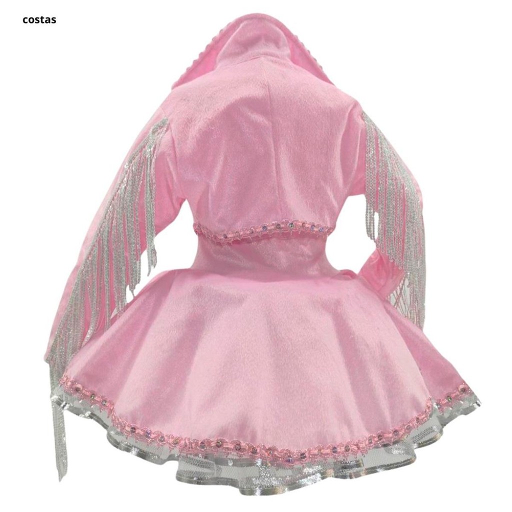 Roupa Boiadeira Ana Castela Adulta de Luxo Jaqueta Com Franja e Vestido Rosa P 36 - 38