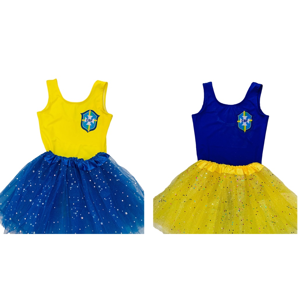 Roupa Brasil Infantil feminina Body Saia de tule Amarelo e Azul Time Brasil Roupa Copa