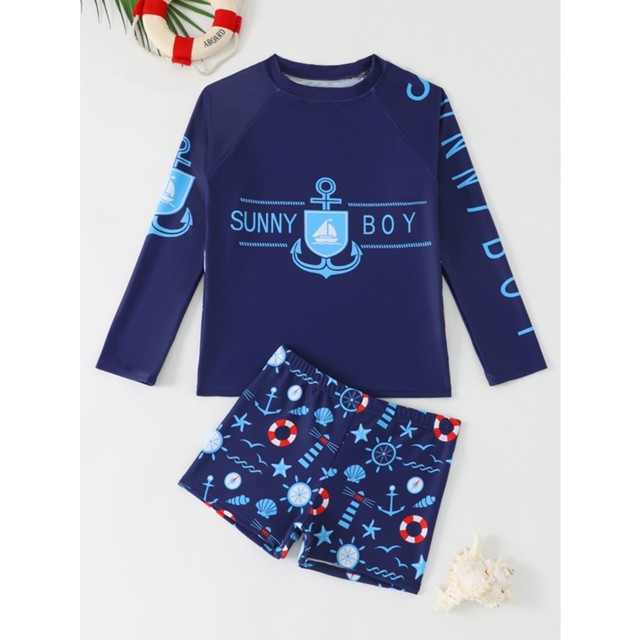 Roupa De Banho Infantil Menino Com Proteção Solar Uv 50+ 4-10 Anos Náutica Moda Praia Menino