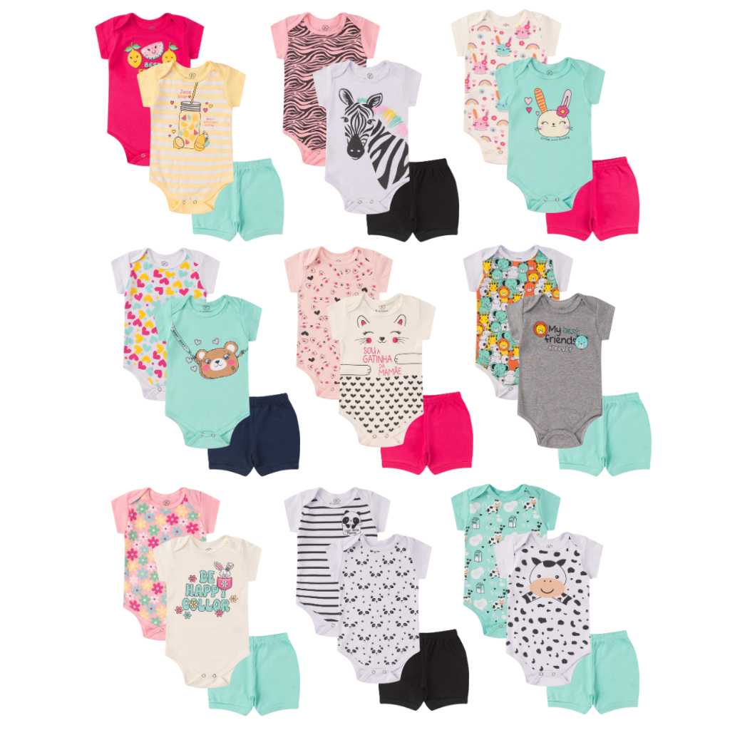 SIGA-NOS E GANHE UM CUPOM DE DESCONTO PARA USAR EM NOSSA LOJA 1 Kits de Body Bebe com 3 peças Lindas roupinhas de bebê para Menina ou Menino, peças de excelente qualidade com muito estilo. Gola transpassada e abotoameto com pressão entre-pernas fácil de vestir e muito durável. COMPRE E SURPRENDA-SE ATENÇÃO: Kit composto por 3 PEÇAS: 2 - Body manga curta com estampas frontal 1 - Shorts liso NA opção SORTIDO O CLIENTE ESCOLHE SOMENTE O GÊNERO E O TAMANHO, AS CORES E ESTAMPAS SÃO ENVIADAS SORTIDAS SEM OPÇÃO DE ESCOLHA. Tamanhos - RN - P - M - G - GG Importante: Para escolher o tamanho, confira as medidas na tabela da última foto por alguma roupa da criança. **POR FAVOR CONFIRA AS MEDIDAS NA ULTIMA FOTO DO ANUNCIO** Produto com encolhimento de até 6% após lavagem. **********PODE OCORRER DE SER ENVIADA CORES E ESTAMPAS DIFERENTES, DEVIDO A ALTA ROTATIVIDADE, MAS COM A MESMA QUALIDADE. --------------------------------------------------------------------------------------------------------------------- FAVOR TIRAR TODAS AS DÚVIDAS NO CAMPO DE PERGUNTAS ANTES DA COMPRA Perguntas Frequentes: - Como saber qual o melhor tamanho? R: Confira a tabela de medidas na última foto por alguma roupa da criança.