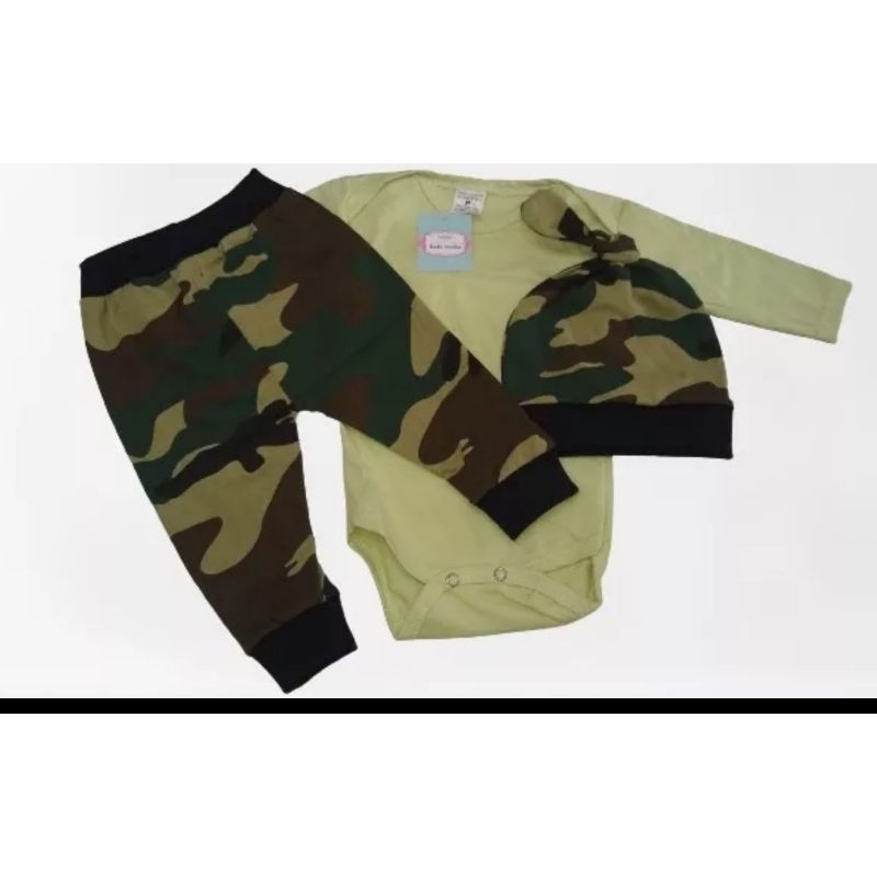 conjunto para bebês em malha de algodão com três peças , calça touca e Body nos tamanhos P M G e GG