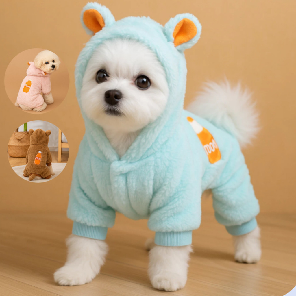Roupa de Cachorro Gato Roupa Pet Dinossauro/Ursinho/Coelho/Tigre com Rabinho Capuz Quente