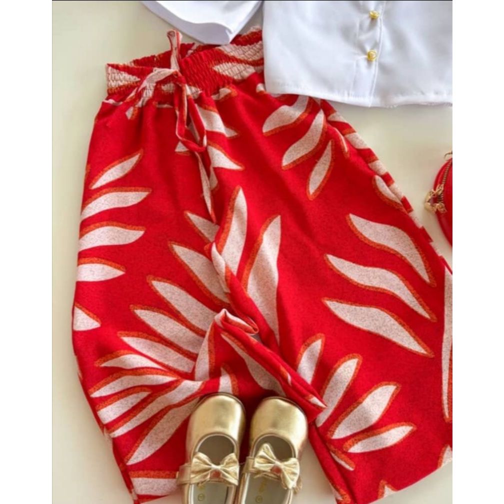 Bem vindo a Grife Bela Kids! Lindo conjunto da Grife Bela Kids perfeito para meninas! Deixe o Natal da sua princesa ainda mais encantador com esse look cheio de estilo e conforto! Lindo conjunto composto por calça pantalona floral de cos alto com elastano na cintura, tecido duna com modelagem soltinha e elástico na cintura para máximo conforto e liberdade nos movimentos e uma linda blusa cropped com alças, ciganinha branca com detalhes de botões pérola, que trazem um toque de brilho delicado e elegante. look perfeito! Ideal para festas de Natal, fotos temáticas, passeios e eventos em família, esse look é puro charme e garante que sua pequena esteja linda e confortável do início ao fim da celebração. -Tecido leve, fresquinho e com excelente caimento -Look perfeito para presentear ou arrasar nas comemorações. contém 2 peças: - calça pantalona floral vermelha - Blusa ciganinha cropped branca Disponível nos tamanhos: 2 a 10 anos ( consulte nossa tabela de medidas) Sua princesinha linda, elegante, estilosa e fashion, blogueirinha ou mini diva, ela vai arrasar com esse look. - Fotos e vídeos reais do produto. Qualquer dúvida estamos à disposição no chat! conjunto infantil feminino natal, roupa natalina infantil, look natal menina, roupa de natal para criança, conjunto pantalona infantil, conjunto menina, roupa de festa infantil, moda infantil natal, roupa natal menina 2 a 10 anos