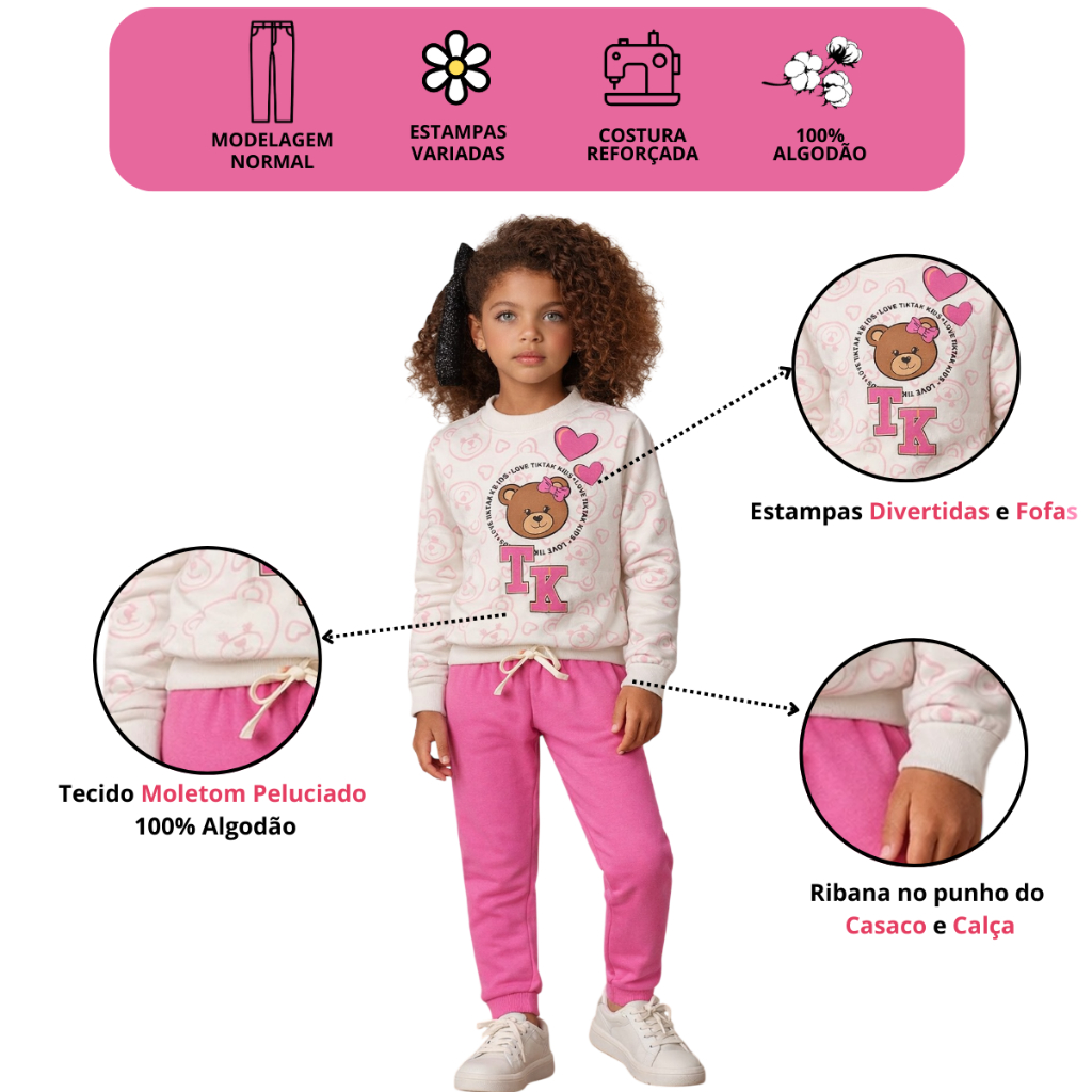 TikTak Kids | O lugar certo para comprar barato! É POSSÍVEL ESCOLHER APENAS O TAMANHO. AS ESTAMPAS E CORES VÃO SORTIDAS. QUANTIDADE: - Kit com 2 Conjuntos SORTIDOS - Kit 4 Peças de Roupas Infantil Menina (2 Casacos + 2 Calças = 4 peças) MATERIAL: - Conjunto em Moletom Peluciado 100% Algodão com Punho e Barra em Ribana, proporcionando maior ajuste e conforto para as pequenas, ideal para os dias frios de inverno. ---------------------------------------------------------------- *CONSULTAR TABELA DE MEDIDAS NAS FOTOS DO ANUNCIO* *Medida da largura da calça pelo elástico sem esticar!* ------------------------------------------------------------------------