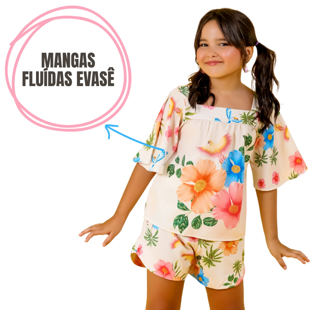Roupa Infantil Menina Tropical – Kit 2 Pçs: Short + Blusa Estampas Exclusivas