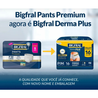 Roupa Íntima Adulto Bigfral Derma Plus Tamanho P/M - 4 Pacotes com 16 Fraldas - Total 64 Tiras