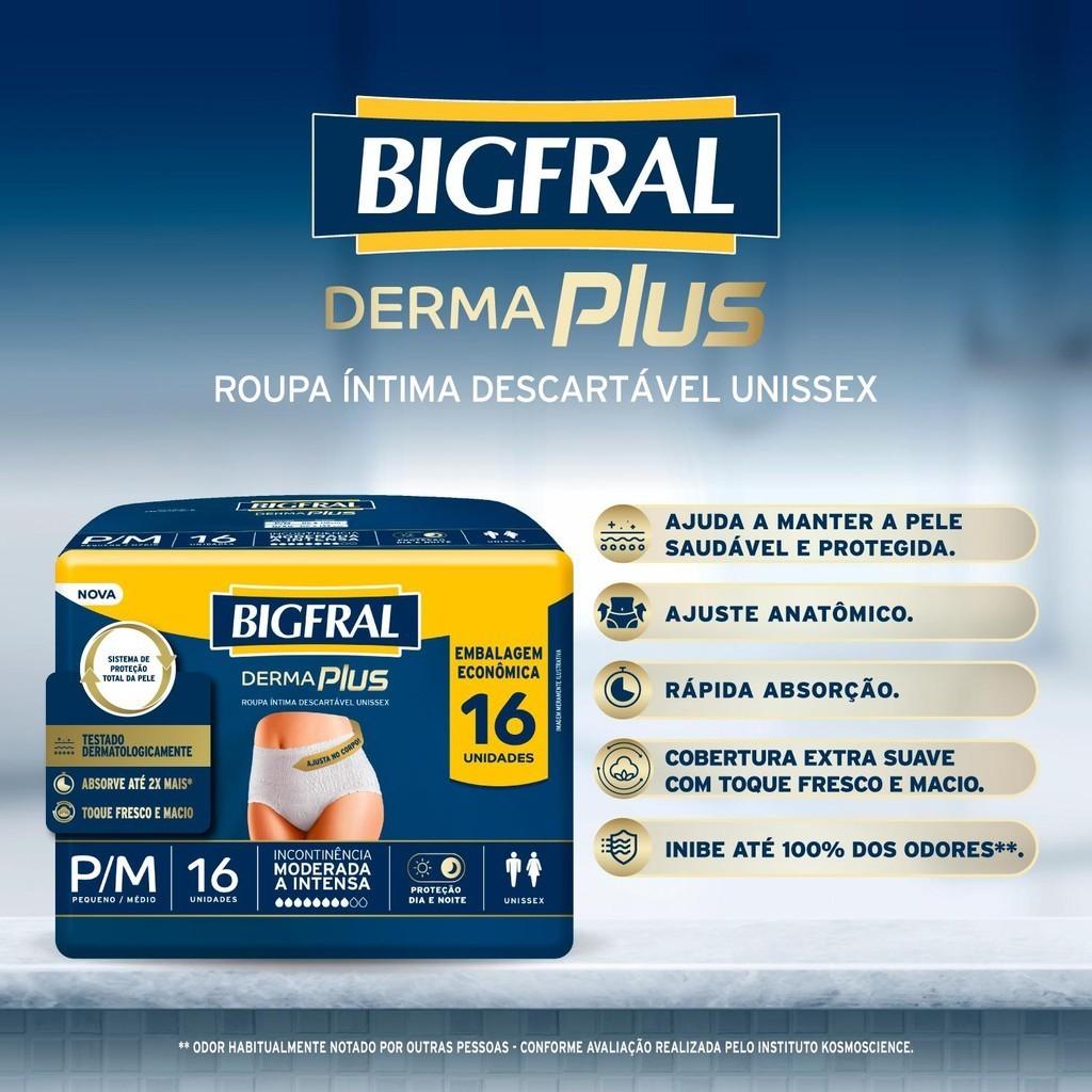 Roupa Íntima Bigfral Pants Derma Plus P/M com 16un