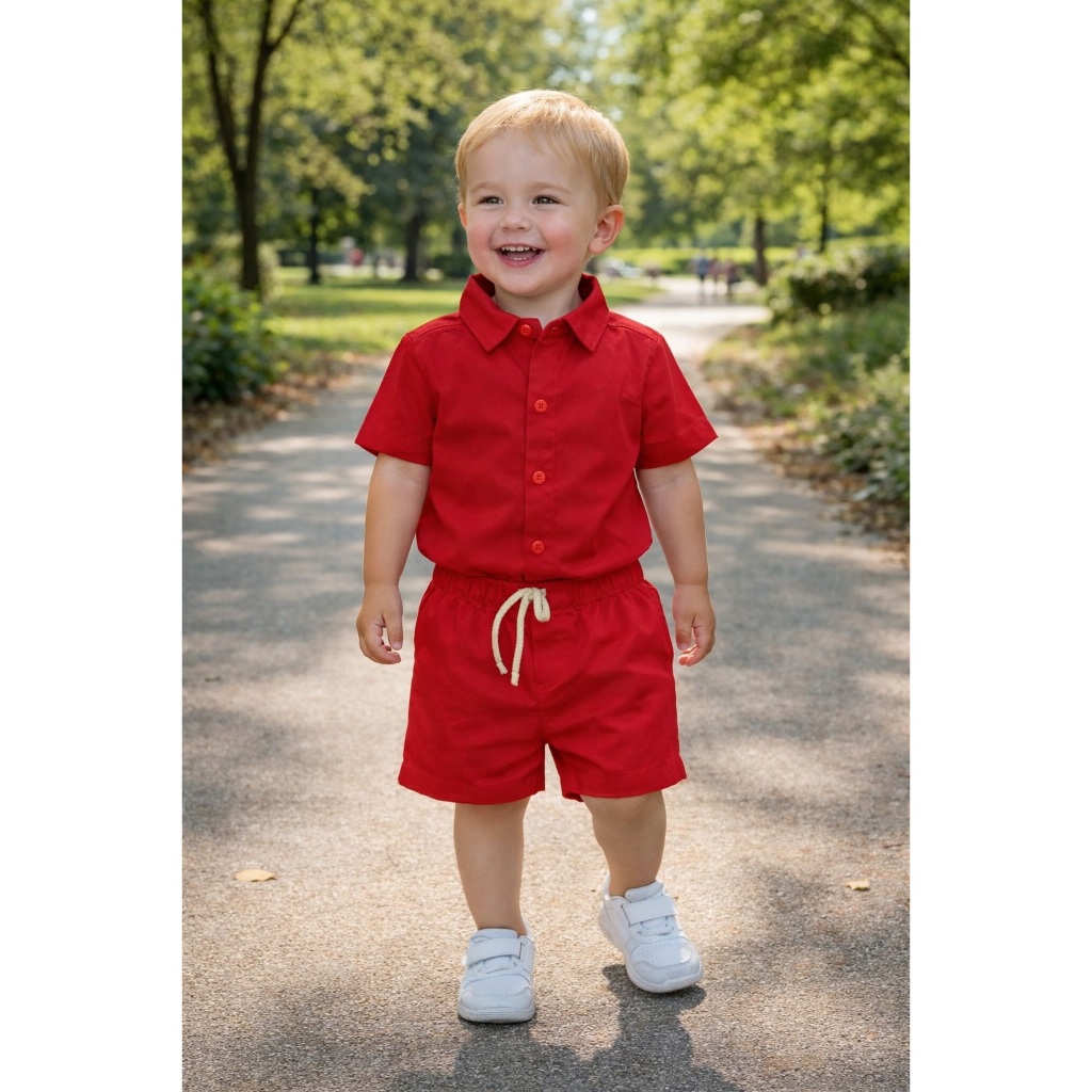 Roupa Mauricinho Liso Shorts Camisa Infantil Menino Social Moda Praia Leve Verão