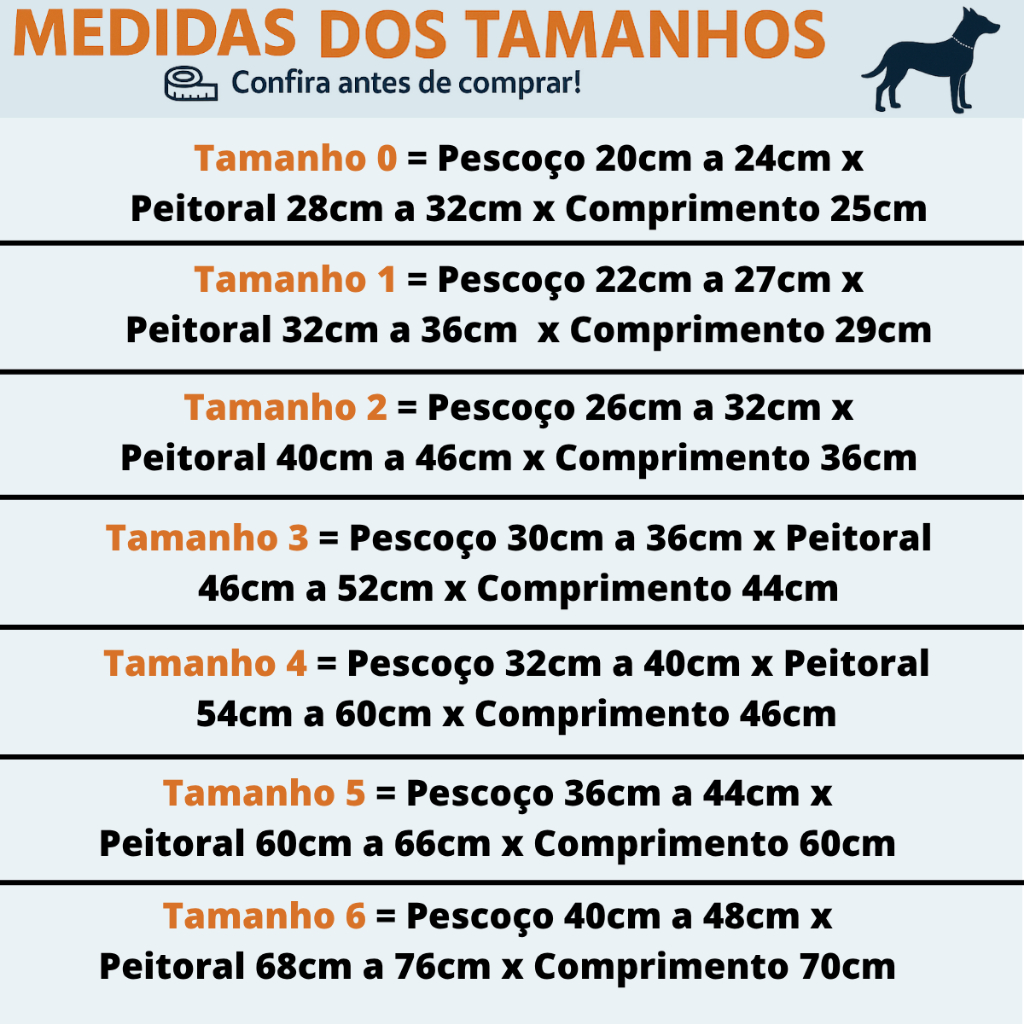 Tabela rápida para você comparar este item com outros similares de Roupas para Animais Domésticos dentro do nosso catálogo.