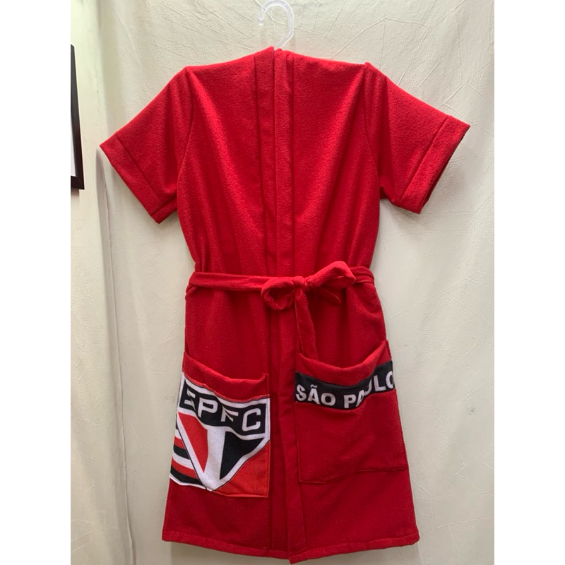 Roupão atoalhado adulto ou infantil Garanta o conforto e estilo com o roupão de seu time de coração nosso roupão é perfeito para sair do banho e para sair da piscina natação entre outros produzido com tecido macio Roupão e fabricacao própria tabela de tamanho adulto P 1,05 cm de comprimento 1,16 circunferência total 0,57 cm manga M 1,10 cm de comprimento 1,28 circunferência total 0,60 cm manga G 1,20 cm de comprimento 1,32 circunferência total 0,63 cm manga tabela de tamanho infantil P 60 cm de comprimento serve de 2 anos de idade até 3 anos M 70 cm de comprimento serve de 4 anos até 5 anos de idade G 80 cm de comprimento ser de 6 anos até 8 anos GG 90 cm de comprimento ser de 8 anos até 10 anos a idades são baseadas o ideal é mediar a criança com ajuda de uma fita métrica antes da compra dúvidas estamos a disposição no chat