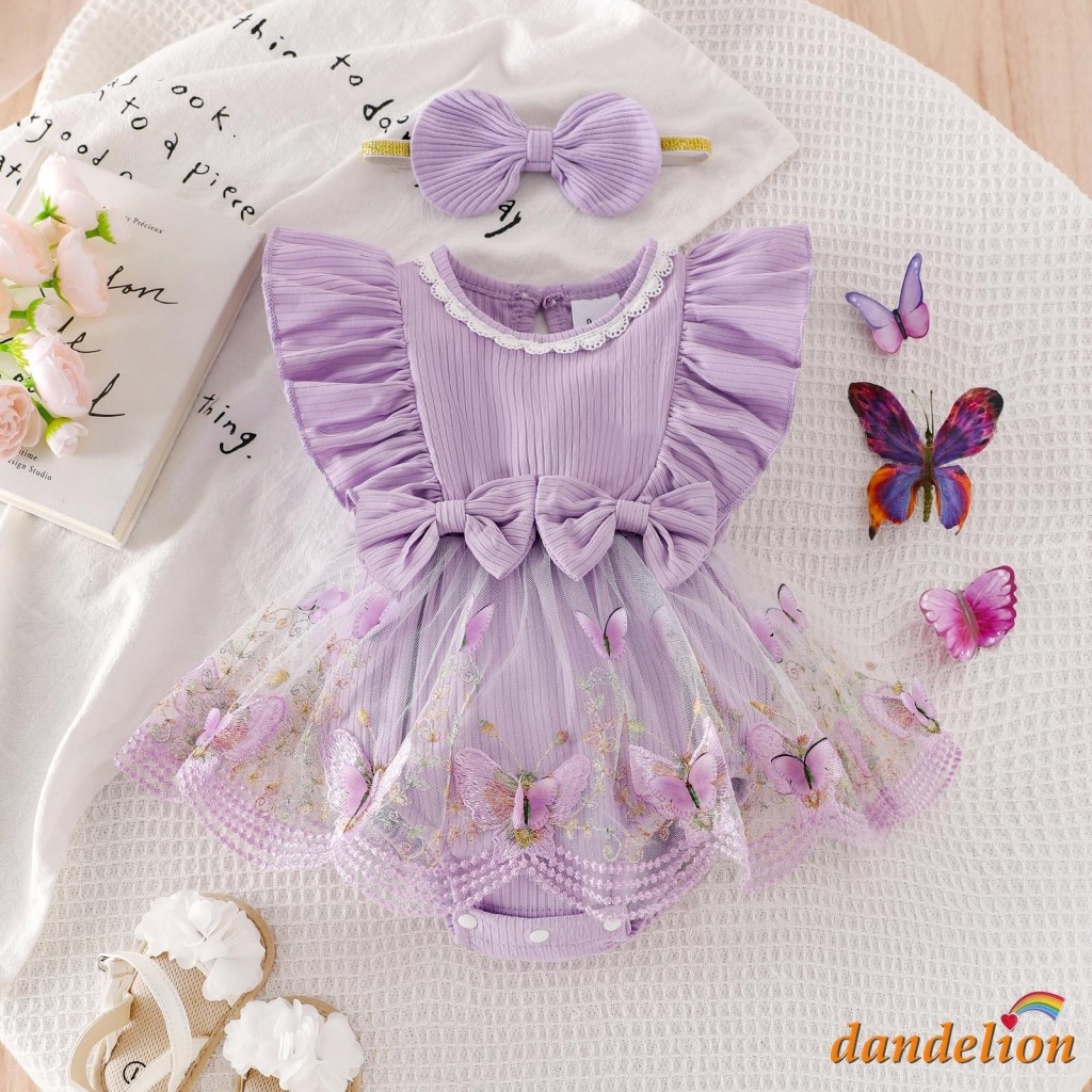 Roupas De Verão Para Bebês Meninas Com Babados , Sem Mangas , Bordado De Borboleta , Macacão Faixa Cabeça , Recém-Nascid