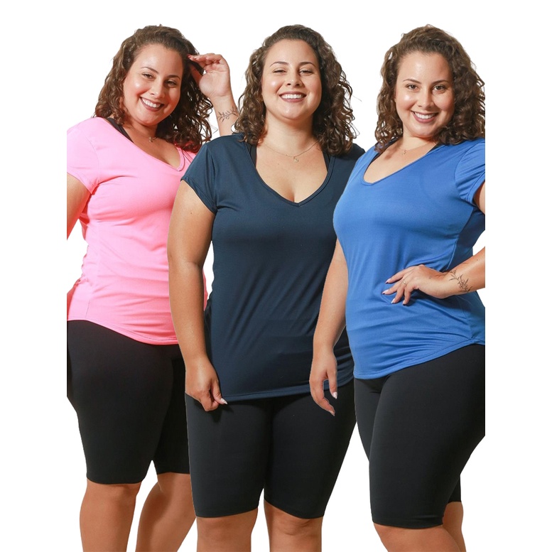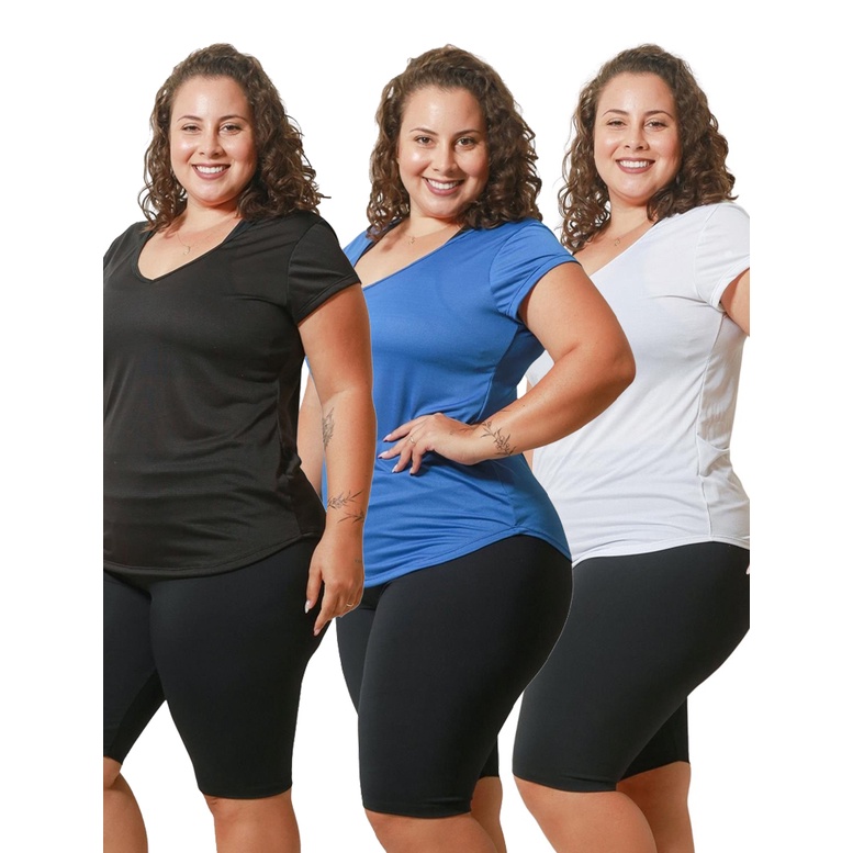 Roupas Femininas 3 peças Blusas Femininas Plus Size Gola V até ao G5 Camisetas Grandes Casual Curve