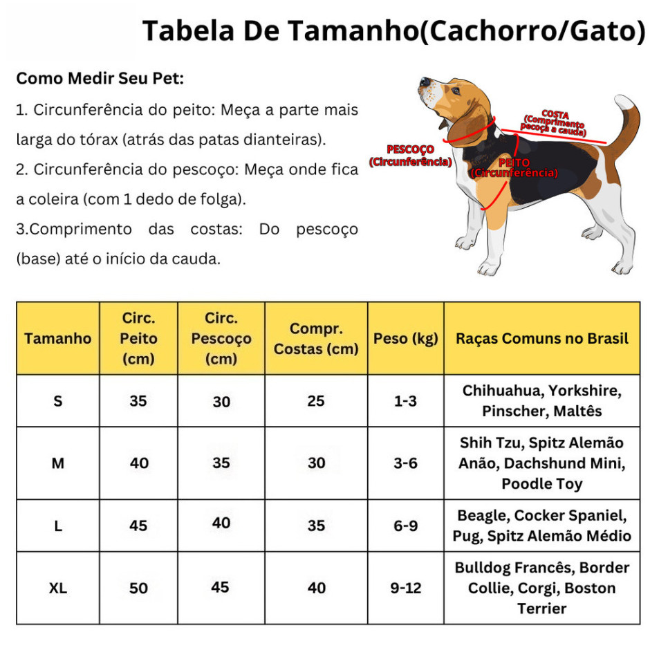 Itens inclusos: - 1 roupa para pet Tamanhos: S(P) / M(M) / L(G) / XL(GG) Medidas aproximadas: P: Pescoço 30cm/Peito 35cm/Comprimento total 25cm M: Pescoço 35cm/Peito 40cm/Comprimento total 30cm G: Pescoço 40cm/Peito 45cm/Comprimento total 35cm GG: Pescoço 45cm/Peito 50cm/Comprimento total 40cm ROUPINHA PET DE TIME, PARA VOCÊ TORCER PARA SEU TIME DO CORAÇÃO COM SEU MELHOR AMIGO! EU GARANTO QUE ELE VAI SER PATINHA QUENTE! Roupinha feita com material levinho, para ele curtir os jogos com o maior conforto possível! Seja para ficar em casa ou arrasar no passeio, estilo e conforto vão estar sempre presentes. Instruções de Uso: - Lavar à mão - Utilizar sabão neutro - Não torcer, apenas aperte para sair a água - Não use máquina de lavar - Não use máquina de secar - Secar à sombra - Não passar sanfona , estampa e etiqueta