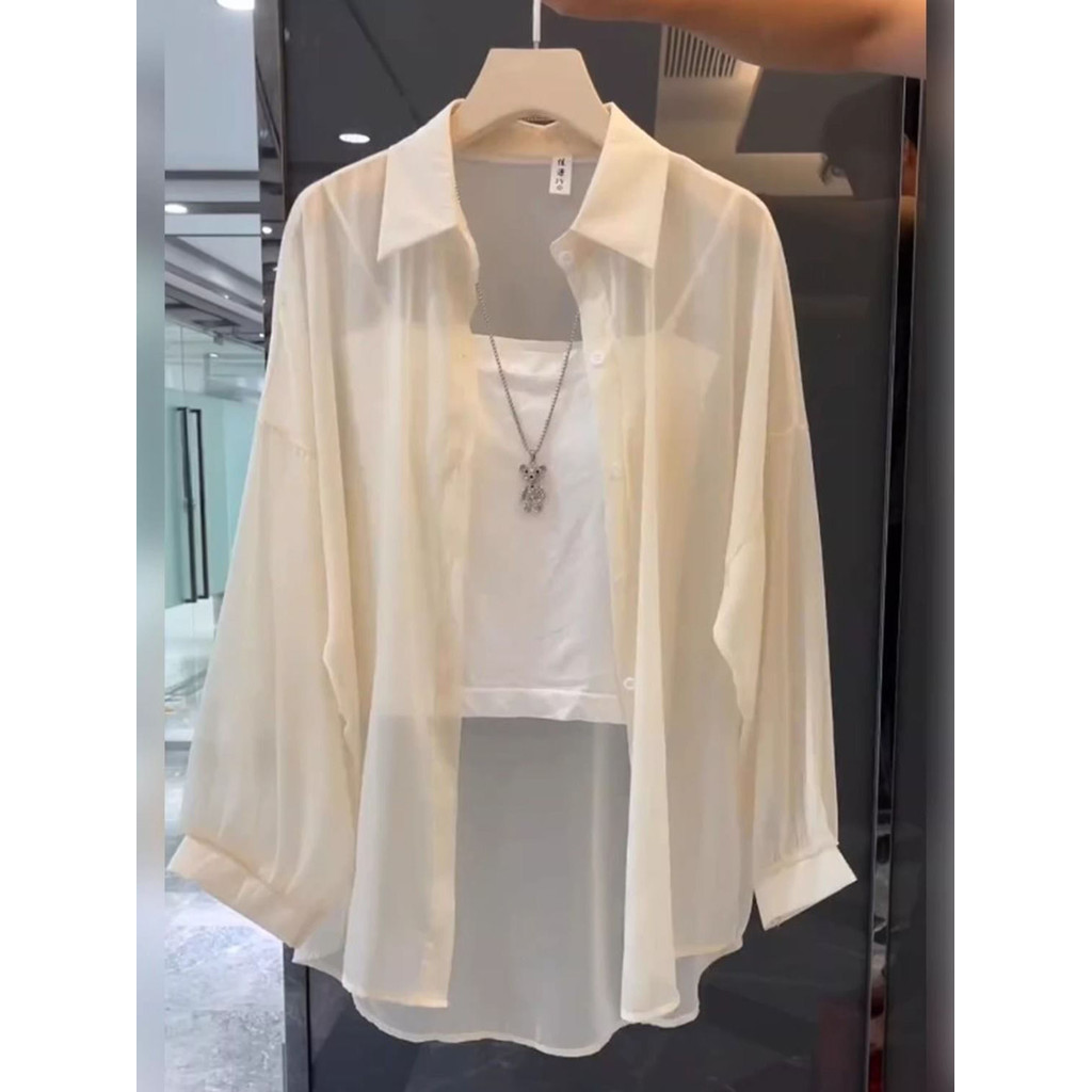 Roxo Claro Perolado Areia chiffon Topo Feminino Verão Fino Manga Comprida Gelo Seda Protetor Solar Camisa Feminina K19 C