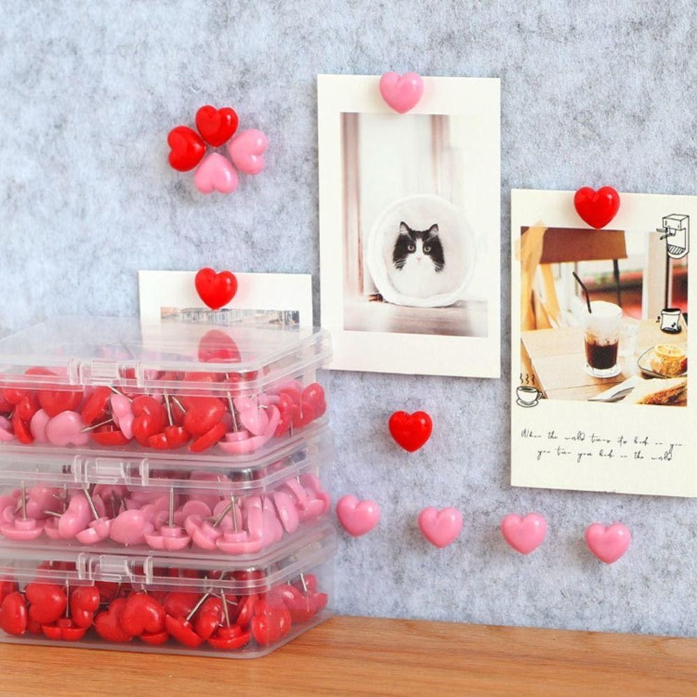 RUNSHANG 50 Peças De Alfinetes De Plástico , Coloridos De Metal Em Formato De Coração , Tachas Coloridas Fofas