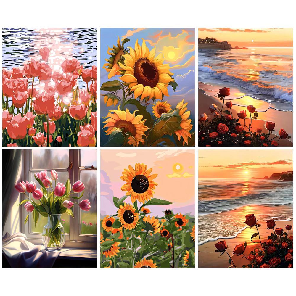 RUOPOTY Tinta Clássica Por Números Pinturas Artesanais Em Linda De Cenário De Flores Para Pintura De Decoração De Parede