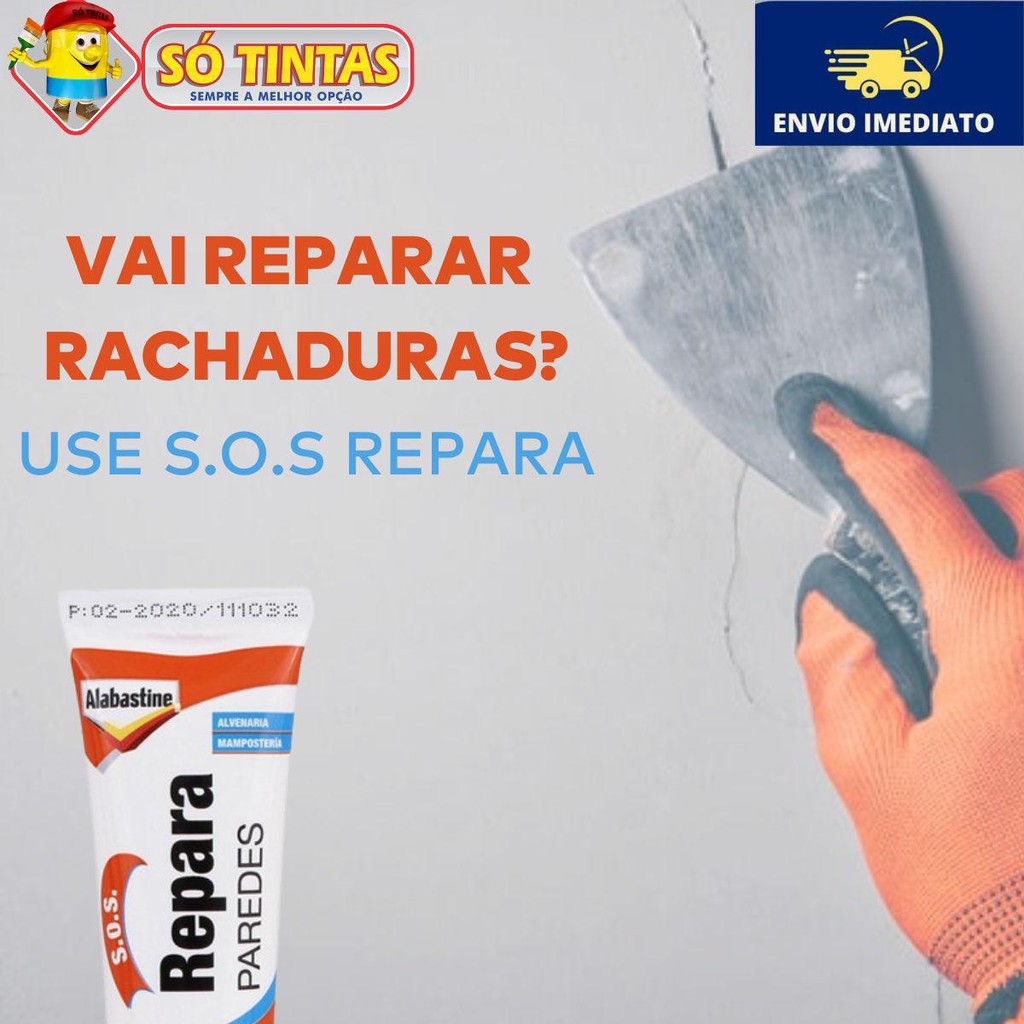 Imagine um ambiente onde cada parede reflete cuidado e atenção. Com S.O.S. REPARA PAREDES ALABASTINE, você pode eliminar furos e imperfeições rapidamente, devolvendo à sua casa a beleza que ela merece. Diga adeus às manchas e marcas indesejadas! Com S.O.S. REPARA PAREDES, a solução é fácil e rápida! Basta aplicar diretamente da embalagem, usando a parte superior como espátula. Em minutos, você terá um acabamento liso e uniforme. Ideal para furos de pregos, parafusos e outras pequenas imperfeições, ele é o aliado perfeito para reparos do dia a dia. Benefícios que fazem a diferença: •Pronto para uso: Sem diluições ou preparações complicadas, é só aplicar! •Alto poder de preenchimento: Eficiente em qualquer tipo de imperfeição. •Acabamento impecável: Resultados que parecem profissionais. •Aplicação fácil e rápida: Ideal para quem tem pouco tempo. Características que garantem qualidade: •Compatível com várias superfícies: Concreto, tijolos, cimento, gesso e superfícies pintadas. •Uso interno e externo: Perfeito para qualquer ambiente da sua casa. •Fácil de armazenar: Compacto e prático, ocupa pouco espaço. Dados Técnicos Descrição do Produto •Nome: S.O.S. REPARA PAREDES ALABASTINE •Tipo: Massa reparadora para superfícies de alvenaria Embalagem •Formato: Bisnagas •Conteúdo: 2 bisnagas de 8g cada •Material da embalagem: Plástico Características Técnicas •Estado físico: Pasta •Cor: Branco •Secagem: Rápida (consulte o rótulo para o tempo exato) •Acabamento: Liso e uniforme após a aplicação Propriedades •Pronto para uso: Não requer diluição ou preparação adicional •Alto poder de preenchimento: Eficiente para furos e pequenas imperfeições •Facilidade de aplicação: Utiliza a própria embalagem como ferramenta Indicações de Uso •Superfícies compatíveis: oConcreto oTijolos oCimento oGesso oSuperfícies pintadas •Ambientes: Internos e externos •Não indicado para: Áreas permanentemente úmidas, metais, vidro ou plástico Composição Química •Resina de acetato de vinila modificada •Cargas minerais •Água •Espessantes •Surfactantes não-iônicos •Microbicidas não-metálicos Aplicação Passo a Passo 1.Preparação da Superfície oLimpe a área ao redor do furo ou imperfeição com um pano seco para remover sujeira ou poeira. 2.Aplicação do Produto oAbra a embalagem e, utilizando a parte superior como espátula, pressione levemente a bisnaga para aplicar a massa diretamente sobre o furo ou imperfeição. oPreencha o espaço completamente e alise a superfície para garantir um acabamento uniforme. 3.Acabamento oSe necessário, use a espátula para alisar ainda mais a superfície, removendo qualquer excesso de produto. oPara um acabamento mais liso, aguarde o tempo recomendado de secagem e, se desejar, lixe levemente a área reparada com uma lixa fina. 4.Pintura (se necessário) oApós a secagem completa da massa, você pode pintar a área reparada para combinar com o restante da parede. 5.Limpeza Limpe a espátula e a área ao redor imediatamente após a aplicação para evitar que o produto seque nas superfícies. Principais perguntas: Acompanha nota fiscal? Sim, todos os nossos produtos são enviados com nota fiscal. O envio é por Correios? Pode ser enviado por Correios ou por transportadora privada, isso vai depender da disponibilidade das transportadoras que atendem o seu endereço. Porque não posso comprar mais de 4 unidades no mesmo pedido? Infelizmente há uma limitação por parte das transportadoras. Elas enviam apenas 4 unidades em cada pedido devido às dimensões e peso do pacote. Para mais unidades, você vai precisar fazer mais de um pedido, respeitando o limite máximo de 4 por pedido. Só Tintas, sempre a melhor opção. Somos a maior rede de lojas de tintas no estado do Rio de Janeiro. Desde 1977, a Só Tintas atua no Rio de Janeiro oferecendo os melhores produtos e soluções em pintura imobiliária, automotiva e industrial. Somos uma empresa familiar que começou em Teresópolis e hoje temos mais de 30 lojas físicas. Trabalhamos de forma ética e transparente, com o principal objetivo de proporcionar aos nossos clientes um atendimento de excelência, provendo as melhores soluções. Nossa missão é levar cor para a vida das pessoas. Por isso a Só Tintas é Sempre a Melhor Opção