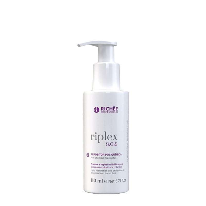 RiPlex Repositor Pós-Química repõe a massa perdida durante os processos de coloração e alisamento, alinha as cutículas e deixa os fios com brilho e maciez intensos. A linha Richée RiPlex é utilizada juntamente com pó descolorante ou colorações. Atua exercendo ação protetora nas cadeias de peptídeos do fio de cabelo – diferente da maioria dos demais tratamentos, que atuam nas cadeias de hidrogênio. Dessa maneira, RiPlex protege o cabelo durante os processos químicos, preservando a integridade dos fios. Benefícios: Proteção e restauração do fio Reposição de massa Cauterização Fortalecimento Recuperação da saúde do fio Reparação profunda Reversão da fragilidade do cabelo Modo de usar – Reparação de danos extremos: Em cabelos com grau de elasticidade altamente comprometido, misture 10 ml do Protetor Gel com 30 ml de água potável. Com o auxílio de um frasco com bico aplicador, aplique a mistura sobre os cabelos secos, da raiz às pontas, e deixe agir por 10 minutos. Sem enxaguar, aplique 15 ml do Repositor Pós-Química mecha a mecha e deixe agir por mais 20 minutos. Enxágue completamente, seque o cabelo em 100% e proceda normalmente com o tratamento químico desejado.