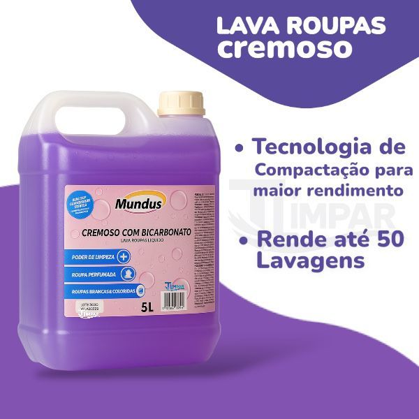 Sabão em pó liquido com bicarbonato de sódio limpeza profunda 5 litros Mundus