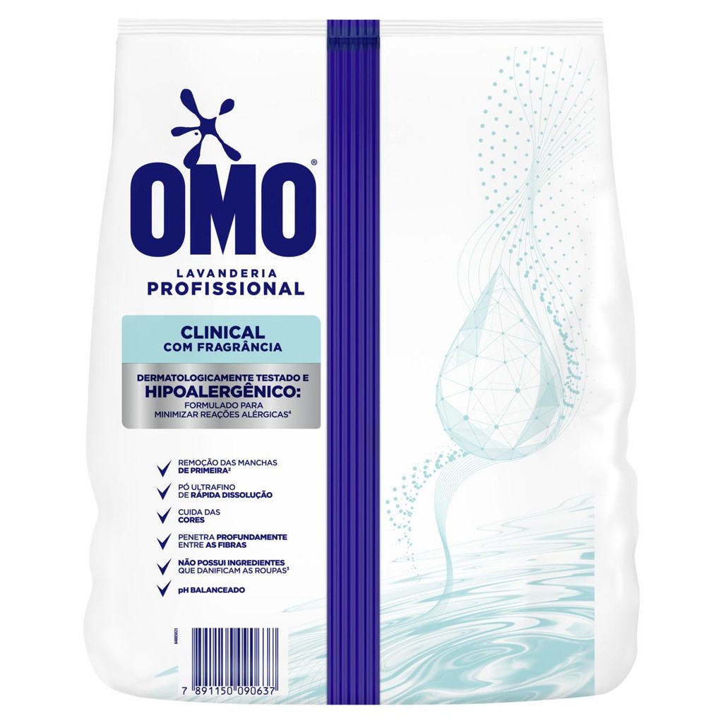 "O detergente em pó OMO Clinical é o lava roupas profissional, com o magnífico poder de limpeza e formulado para minimizar reações alérgicas e irritações da pele. Este lava roupas em pó tira manchas de primeira** e limpa profundamente roupas brancas e coloridas. Ele atua profundamente nas fibras dos tecidos para higienizar as peças e eliminar as manchas. OMO Clinical possui a fórmula com pó ultrafino de rápida dissolução, que garante alto desempenho de lavagem. Muito versátil, ele pode ser usado tanto para a limpeza de tecidos brancos, quanto coloridos, já que não possui ingredientes que danificam as roupas***. Use-o para revitalizar roupas, lençóis, toalhas, cobertores, uniformes, entre muitos outros tecidos. Sua tecnologia faz dele um sabão como o de lavanderias profissionais: na dosagem correta, 4 kg rende até 50 lavagens de puro cuidado. OMO Clinical é um produto lava roupas hipoalergênico e é dermatologicamente testado. A qualidade reconhecida de OMO, Clinical garante o tratamento das roupas, a preservação das cores dos tecidos e a remoção de manchas já na primeira lavagem**. Para um melhor resultado de perfume e maciez, use Comfort Lavanderia Profissional. *Rendimento calculado de acordo com a recomendação de uso, máquina de capacidade de 11 kg. Para outros tipos de máquina: ajuste a dosagem de acordo com a recomendação do fabricante. **Manchas de óleo de fritura, óleo de cozinha, suco de laranja, suco de pêssego, terra seca e pó compacto em tecido de algodão. ***Fórmula sem ingredientes que possam danificar os tecidos, como percabonato de sódio e peróxido de hidrogênio."