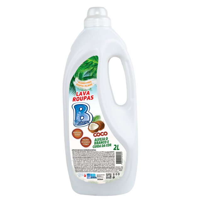 Lava Roupas Coco Barbarex 2 Litros O Lava Roupas Coco Barbarex foi desenvolvido especialmente para tecidos delicados e finos. Sua fórmula suave com fragrância de coco evita irritações na pele e proporciona uma agradável sensação ao usar as roupas. É ideal para lavar roupas de bebês, garantindo uma limpeza eficaz sem agredir os tecidos sensíveis. Barbarex Coco cuida das roupas mais delicadas, deixando-as limpas e perfumadas. Perfeito para quem busca proteção e conforto, assegurando a suavidade e o bem-estar dos pequenos. Confie em Barbarex para a melhor experiência em cuidado com suas roupas delicadas. Recomendações de Armazenamento: Mantenha o produto na embalagem original. Armazene em local fresco, seco, e protegido da luz direta e calor excessivo. Detalhes do Produto: Embalagem: 2 Litros