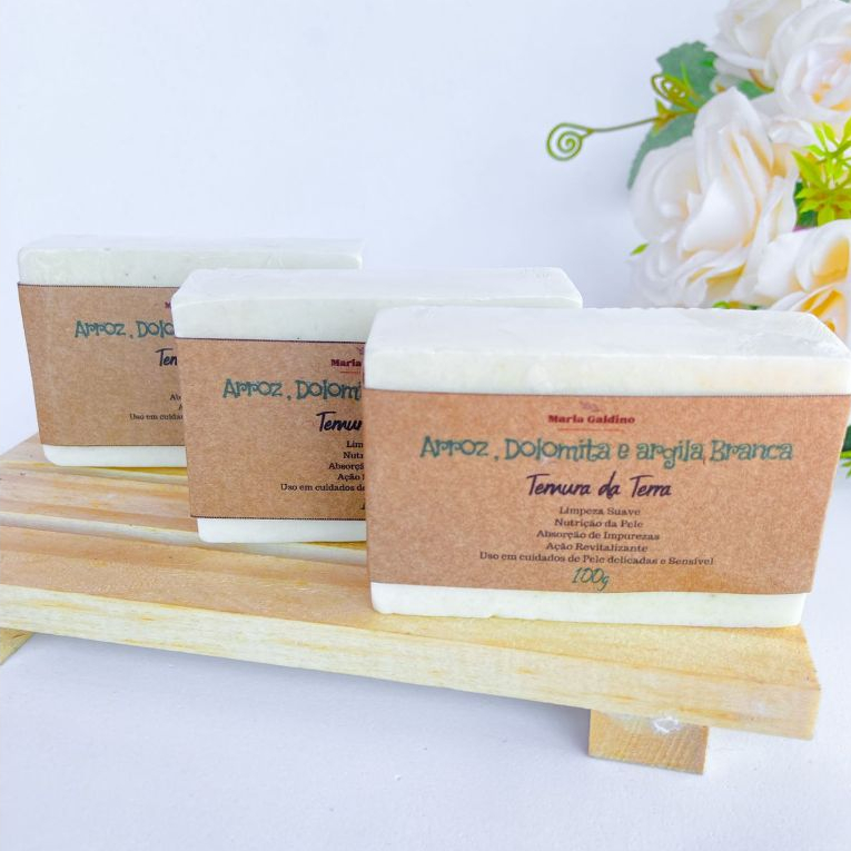 Sabonete de Arroz Com Dolomita e Argila Branca Artesanal