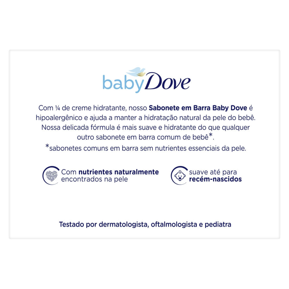 Sabonete em Barra Dove Baby Hidratação Enriquecida 75g Sabonete em barra Hipoalergênico Com pH neutro e mantendo a pele do bebê macia e perfumada Sem corantes artificiais, parabenos, ftalatos, sulfat