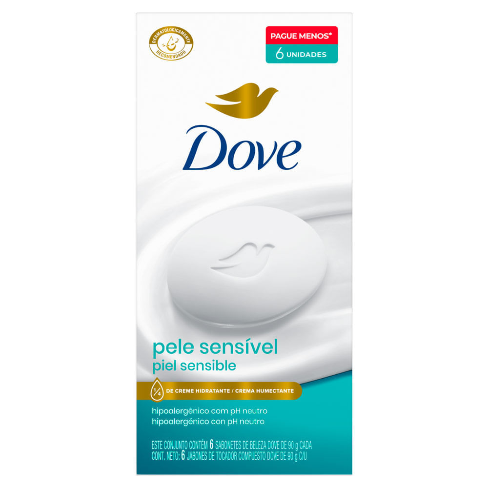 Sabonete em Barra Dove Pele Sensível com 6 Unidades de 90g cada