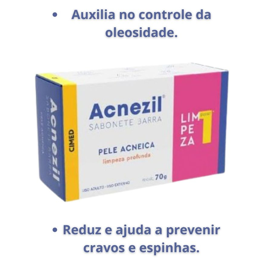 Descubra o segredo para uma pele livre de cravos e espinhas com o sabonete Acnezil pele acneica! Sua fórmula concentrada e poderosa é especialmente desenvolvida para combater a acne e proporcionar uma pele saudável e radiante. Com ingredientes cuidadosamente selecionados, o Sabonete Acnezil pele acneica atua profundamente nos poros, eliminando o excesso de oleosidade e impurezas que obstruem a pele. Sua ação adstringente ajuda a controlar a produção de sebo, reduzindo o surgimento de cravos e espinhas. Além disso, o Sabonete Acnezil Pele acneicar possui propriedades antibacterianas, que combatem as bactérias responsáveis pela formação da acne. Sua fórmula suave e eficaz não resseca a pele, proporcionando uma limpeza profunda sem causar irritações. Com o Sabonete Acnezil pele acneica, você terá uma aliado poderoso no combate à acne. Sua textura cremosa e refrescante deixa a pele revitalizada, suave e livre de imperfeições. Dê adeus aos cravos e espinhas e desfrute de uma pele radiante e confiante. Experimente o Sabonete Acnezil e transforme sua rotina de cuidados com a pele. Garanta uma pele limpa, livre de cravos e espinhas. Sinta a diferença e conquiste uma pele impecável com a confiança que você merece. Adquira o seu sabonete hoje mesmo e descubra o poder da pele saudável