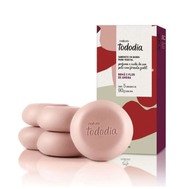 PRODUTO ORIGINAL NATURA - NOVO CONTEM: 1 CAIXA COM 5 SABONETES 90g Sabonete Tododia: Sua pele mais macia e sedosa o Sabonete em Barra Puro Vegetal Tododia proporciona uma limpeza suave enquanto hidrata a pele, deixando-a macia e perfumada. com uma fragrância envolvente, este sabonete é perfeito para transformar o banho em um momento de cuidado e prazer. > Caixa com 5 unidades < . não resseca a pele . explosão de fragrância . produto vegano . limpeza delicada