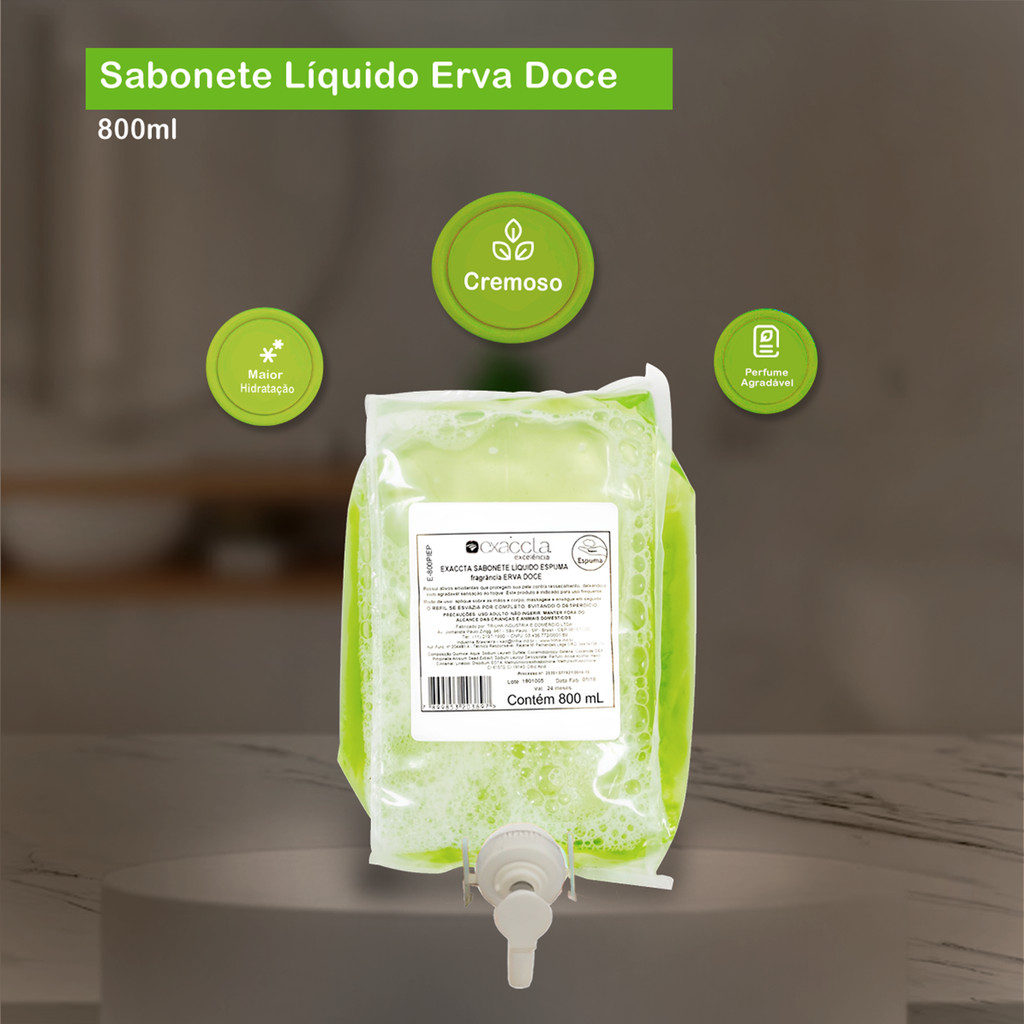 Sabonete Espuma Refil com Válvula Erva Doce 800ml Exaccta Plus Trilha