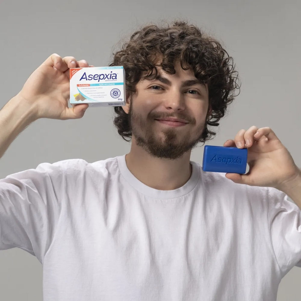 O que é o Asepxia Antiacne Esfoliante? O Asepxia Antiacne Esfoliante é um sabonete em barra desenvolvido para combater a acne, reduzindo a oleosidade, desobstruindo os poros e diminuindo o surgimento de cravos e espinhas. Ele promove uma limpeza profunda que deixa a pele limpa e com um aspecto uniforme. Com microesferas esfoliantes, ele remove células mortas sem agredir a pele. Sua fórmula contém Extrato de Jojoba, um ingrediente que ajuda a repor a umidade natural da pele, minimiza linhas de expressão e melhora a firmeza e a elasticidade, retardando o envelhecimento cutâneo. Para que serve o Asepxia Sabonete Antiacne Esfoliante? Indicado para peles mistas, oleosas e com tendência à acne, o Asepxia Esfoliante realiza uma esfoliação suave que remove células mortas, combate a oleosidade, e ajuda a prevenir cravos e espinhas. Pode ser utilizado tanto no rosto quanto no corpo, mantendo os poros desobstruídos e a pele mais saudável. Como usar o Asepxia Sabonete Antiacne Esfoliante em Barra? Aplique o sabonete sobre a pele úmida duas vezes ao dia, pela manhã e à noite. Massageie suavemente, focando nas áreas com tendência a cravos e espinhas. Enxágue abundantemente para remover o produto. Composição Formulado com ácidos salicílico e glicólico e ingredientes naturais, que agem em sinergia para uma pele mais equilibrada e saudável. Advertências Uso externo. Não ingerir. Mantenha fora do alcance de crianças. Em caso de irritação, suspenda o uso e consulte um médico. Evite contato com os olhos; se ocorrer, lave com água em abundância. Conservar em local fresco e seco.