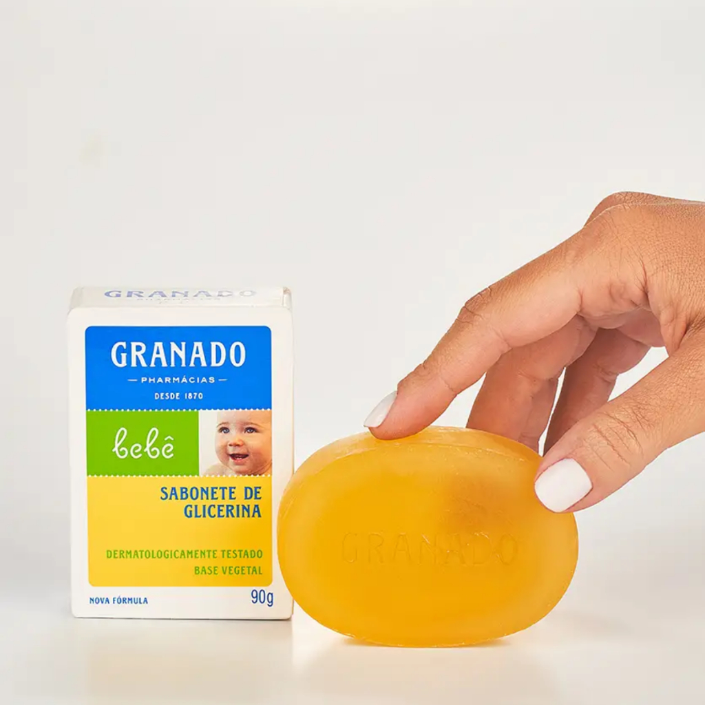 Sabonete Glicerina Bebê Granado 90g O Sabonete Glicerina Bebê Granado 90g foi desenvolvido especialmente para a pele delicada do bebê. Com uma fórmula suave e livre de ingredientes agressivos, proporciona limpeza eficaz sem ressecar a pele. Principais Características: - Fórmula Suave: Enriquecida com glicerina vegetal, hidrata e protege a pele do bebê. - Hipoalergênico: Dermatologicamente testado, minimiza o risco de alergias e irritações. - Livre de Parabenos e Corantes: Segurança garantida para o uso diário desde os primeiros dias de vida. Benefícios: - Limpa a pele sem remover sua hidratação natural. - Deixa uma sensação suave e macia após o banho. - Ideal para bebês e também para adultos com pele sensível. Diferenciais do Produto: - Desenvolvido pela Granado, marca de confiança com mais de um século de tradição. - Ingredientes naturais que respeitam a fisiologia da pele. - Embalagem prática e fácil de manusear. Especificações Técnicas: - Peso: 90g Instruções de Uso: - Aplique o sabonete na pele molhada do bebê, massageando suavemente até formar espuma. - Enxágue bem. Pode ser usado diariamente. Avisos e Precauções: - Uso externo. - Evitar contato com os olhos. Em caso de contato, enxaguar com água abundante. - Manter fora do alcance de crianças sem supervisão de um adulto. - Em caso de irritação, descontinue o uso e consulte um médico. O que está incluso? - 01 Sabonete Glicerina Bebê Granado 90g ---- Dúvidas Frequentes ---- Os produtos são originais? Sim. Todos os nossos produtos são originais. Emitem nota fiscal? Sim. Emitimos nota fiscal para todos os pedidos.