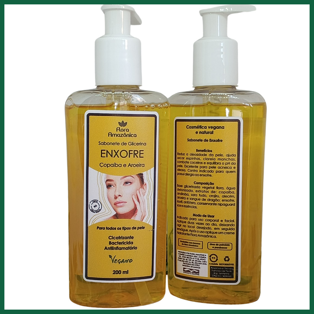 Reduza a oleosidade da pele, ajuda a secar espinhas, clareia manchas, combate coceiras, equilibra o ph da pele. Excelente para pele acneica e oleosa. Contraindicado para quem possui alergia ao enxofre. Modo de Usar Indicado para uso corporal e facial. Aplique 2 vezes ao dia, deixando agir no local desejado. Em seguida, enxágue. Após o uso, aplique um creme hidratante Cuidado Orgânico de sua preferência. Composição Base glicerinada vegetal; Água deionizada; Extratos de copaíba, andiroba, sara tudo, crajirú, alecrim, aroeira e sangue de dragão; Enxofre; Lauril; Anfótero; Conservante nipoguard sce e; Essências.