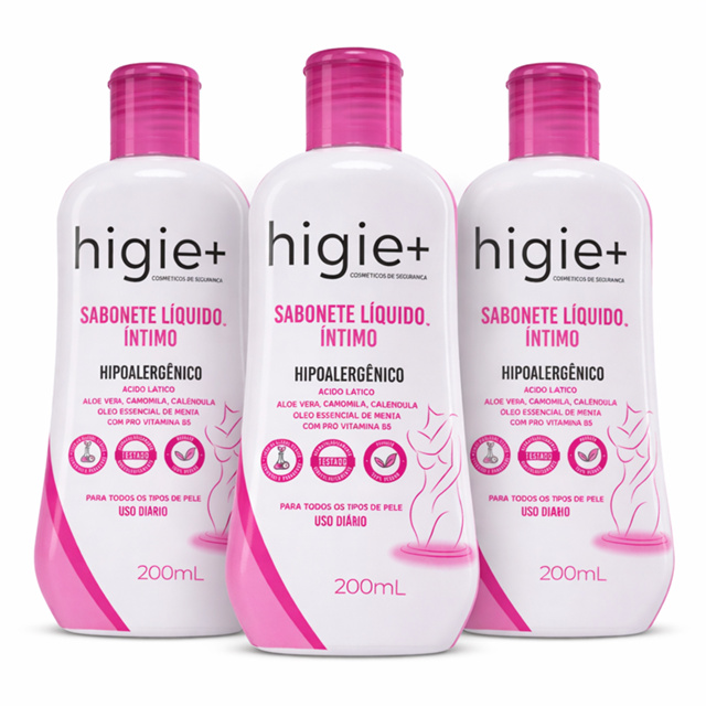 Sabonete Íntimo Hipoalergênico Higie+ Kit 3 Frascos 200ml Uso Diário Seguro