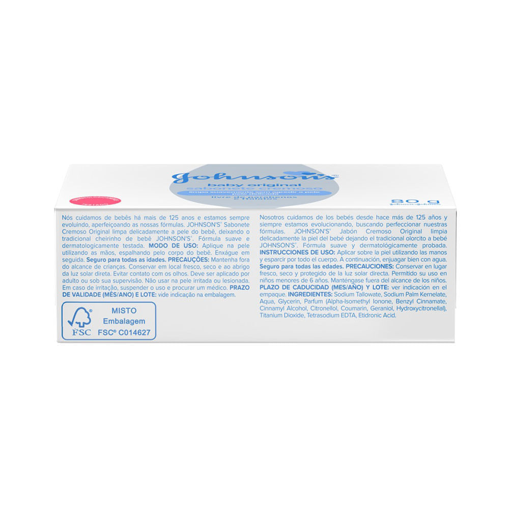 SABONETE JOHNSON & JOHNSON BABY REGULAR ======================================= O Sabonete Johnson & Johnson Baby Regular é ideal para a pele sensível dos bebês, proporcionando uma limpeza suave. Sua formulação cremosa e o aroma relaxante garantem conforto e bem-estar durante o banho. Testada dermatologicamente, garante segurança e confiança para a pele sensível dos bebês, respeitando suas necessidades. Este sabonete garante uma experiência de banho relaxante, deixando a pele do seu bebê macia e bem cuidada. FÓRMULA DERMATOLOGICAMENTE TESTADA Testada dermatologicamente, garante segurança e confiança para a pele sensível dos bebês, respeitando suas necessidades. SUAVIDADE E CONFORTO INCOMPARÁVEIS Este sabonete garante uma experiência de banho relaxante, deixando a pele do seu bebê macia e bem cuidada. MODO DE USO =========== Para um uso eficiente, molhe o corpo do bebê e aplique o sabonete suavemente sobre a pele. Enxágue bem para retirar qualquer resíduo de produto. Molhe o corpo do bebê com água morna, evitando temperaturas muito altas ou muito baixas. Aplique o sabonete nas mãos até formar uma espuma cremosa, garantindo uma aplicação uniforme. Espalhe a espuma pelo corpo do bebê, focando nas áreas mais delicadas e sensíveis. Enxágue bem o corpo do bebê, removendo todo o produto e evitando deixar resíduos. MOLHAR Molhe o corpo do bebê com água morna, evitando temperaturas muito altas ou muito baixas. APLICAR Aplique o sabonete nas mãos até formar uma espuma cremosa, garantindo uma aplicação uniforme. ESPALHAR Espalhe a espuma pelo corpo do bebê, focando nas áreas mais delicadas e sensíveis. ENXAGUAR Enxágue bem o corpo do bebê, removendo todo o produto e evitando deixar resíduos. CARACTERÍSTICAS E BENEFÍCIOS DO SABONETE JOHNSON & JOHNSON BABY REGULAR ======================================================================= O Sabonete Baby Regular mantém a pele hidratada e limpa eficazmente, sem causar irritações. É Hipoalergênico e seguro para uso diário, desde o nascimento. Proporciona uma limpeza eficaz e suave, respeitando a integridade da pele delicada dos bebês. Ideal para proporcionar um banho relaxante aos recém-nascidos, respeitando a fragilidade da pele infantil. Desenvolvido para reduzir chances de alergias, sendo seguro para uso em peles sensíveis. Projetado especialmente para ser usado desde o primeiro dia de vida do bebê, com total confiança. LIMPEZA SUAVE Proporciona uma limpeza eficaz e suave, respeitando a integridade da pele delicada dos bebês. SEGURANÇA GARANTIDA Ideal para proporcionar um banho relaxante aos recém-nascidos, respeitando a fragilidade da pele infantil. HIPOALERGÊNICO Desenvolvido para reduzir chances de alergias, sendo seguro para uso em peles sensíveis. INDICADO DESDE O NASCIMENTO Projetado especialmente para ser usado desde o primeiro dia de vida do bebê, com total confiança. ESPECIFICAÇÕES TÉCNICAS ======================= O produto é compacto e prático, ideal para uso diário na rotina de cuidados infantis. Protege e mantém as propriedades do sabonete intactas. Peso: 80g Tipo de Produto: Sabonete em barra Material da Embalagem: Papel e cartão mistos com certificação sustentável. PH Neutro: Formulação que respeita o pH natural da pele. Uso Seguro Diário: Desde o primeiro dia de vida. Hipoalergênico: Desenvolvido para a pele delicada dos bebês. SOBRE A MARCA JOHNSON & JOHNSON =============================== A Johnson & Johnson é mundialmente reconhecida pela qualidade de seus produtos voltados para a saúde infantil. Com mais de 100 anos de experiência, a marca oferece inovação e segurança para os cuidados com os bebês. Mais de 100 anos de experiência no cuidado infantil, garantindo confiança e qualidade. Desenvolvimento contínuo de produtos com fórmulas seguras e eficazes, priorizando a saúde do bebê. Rigorosos testes dermatológicos garantem a segurança de cada produto, oferecendo tranquilidade aos pais. TRADICIONALIDADE Mais de 100 anos de experiência no cuidado infantil, garantindo confiança e qualidade. INOVAÇÃO Desenvolvimento contínuo de produtos com fórmulas seguras e eficazes, priorizando a saúde do bebê. COMPROMISSO COM A SEGURANÇA Rigorosos testes dermatológicos garantem a segurança de cada produto, oferecendo tranquilidade aos pais.