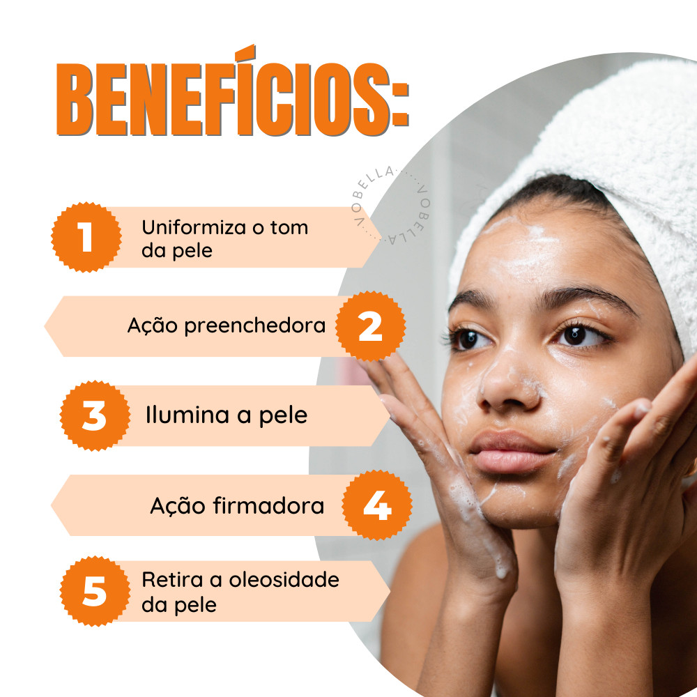 Oii, é um prazer ter você aqui! Finalize relembrando brevemente algumas qualidades do produto e fazendo um chamativo para compra. O que é: - Sabonete Facial Vitamina C Labotrat 280ml. - Marca: Labotrat. - Linha: Dermo Skin. - Dermatologicamente Testado. - Antioxidante. - Uso diário. O que tem: - Nano vitamina C. - Ácido Hialurônico. - Colágeno. - Eficacia comprovada. O que faz: - Efeito iluminador e antioxidante. - Remove a make sem ressecar. - Ação clareadora. - Hidrata. - Uniiformiza o tom da pele. Indicado para: - Todos os tipos de pele. Como usar: - Com o rosto molhado, aplique uma quantidade suficiente do Sabonete. - Massageie com movimentos circulares e suaves até obtenção de espuma cremosa. - Retire o produto com água em abundância. * Use de 2 a 3 vezes ao dia. Adquira o Sabonete de Limpeza Facial Labotrat hoje mesmo e dê o primeiro passo para uma pele mais luminosa, uniforme e saudável. Sua pele merece esse cuidado especial! Surgiu alguma dúvida? Entre em contato com a gente! Boas Compras :)