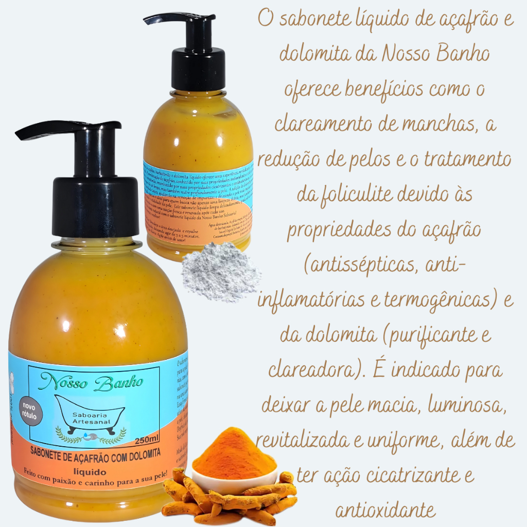 Sabonete Líquido Açafrão com Dolomita Depila Clareia Hidrata
