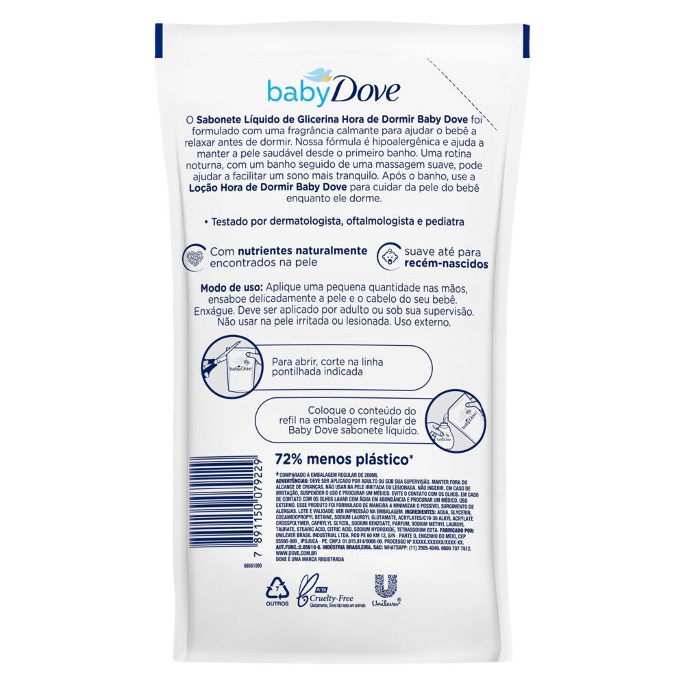 Sabonete Líquido Baby Dove Hora de Dormir Refil 180ml