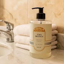 Sabonete Líquido Chá Branco 500ml: Limpeza suave e perfumação delicada para mãos e corpo. Sua fórmula hidratante proporciona maciez e frescor diário, com um aroma leve e sofisticado. Ideal para lavabos e banheiros. Benefícios: Limpa delicadamente, hidrata, fragrância revigorante, espuma cremosa. Prático e sofisticado.