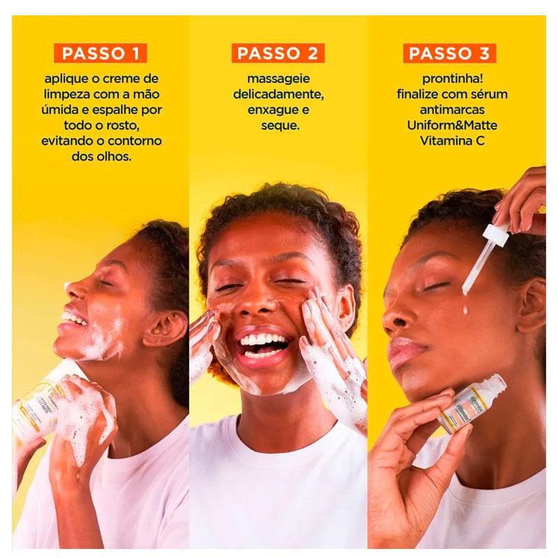 Garnier SkinActive Uniform & Matte Vitamina C Antioleosidade O sabonete líquido facial para pele oleosa Garnier SkinActive Uniform & Matte Vitamina C, limpa profundamente o rosto e garante o controle da oleosidade durante o dia. Possui fórmula com ingredientes naturais e Vitamina C que tem ação antioxidante. Promove a remoção de impurezas, maquiagem e oleosidade sem agredir a pele pois hidrata a medida que limpa. O Sabonete Líquido Facial conta com ação antioleosidade, efeito purificante, efeito matte e antimarcas. Com apenas uma gota, forma uma espuma cremosa suficiente para limpar todo o rosto. Benefícios: - Reduz manchas - Tem ação antioxidante - Traz viço e luminosidade - Limpa sem ressecar - Controla a oleosidade resultando em uma pele limpa e seca - Reduz marcas e suaviza imperfeições - Efeito uniforme e matte - Rende 360 usos Principais Ativos: - Vitamina C: Poderoso antioxidante estimulador de colágeno que regenera, unifica e reduz as imperfeições. - AHA de Limão: Ativo natural que controla oleosidade sem agredir, garantindo toque seco por 12 horas. Como usar o sabonete facial ? Com o rosto úmido, aplique o sabonete e massageie a pele até formar uma espuma suave. Apenas um pequena goto é o suficiente para todo o rosto. Enxágue bem. Para uma pele iluminada e saudável, compre agora mesmo a linha completa de Garnier na e garanta esse cuidado.