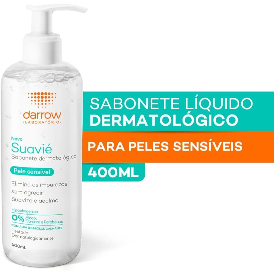 Sabonete Líquido Dermatológico Suavié Pele Sensível 400ml O Sabonete Líquido Dermatológico Suavié é a solução ideal para a higiene diária de peles sensíveis e delicadas. Com fórmula suave, hipoalergênica e sem sabão, ele limpa sem agredir, respeitando o equilíbrio natural da pele. Indicado por dermatologistas, é ideal tanto para o rosto quanto para o corpo, inclusive durante tratamentos dermatológicos. Principais Características: ➡️ Limpeza Suave e Eficaz Formulado com tensoativos suaves, proporciona uma higiene eficaz sem comprometer a barreira de proteção da pele, evitando o ressecamento. ➡️ Hipoalergênico e Sem Sabão Sem fragrâncias agressivas, parabenos ou corantes, minimiza o risco de irritações e reações alérgicas, sendo seguro para peles extremamente sensíveis. ➡️ Uso Diário e Familiar Com embalagem de 400ml, é ideal para uso frequente e compartilhado por toda a família, inclusive por pessoas com pele sensibilizada. Benefícios: Limpa profundamente sem agredir a pele Mantém a hidratação natural e o pH fisiológico Acalma a pele sensibilizada e irritada Pode ser utilizado por pessoas com pele reativa ou em tratamento dermatológico Rende mais graças à embalagem econômica Diferenciais do Produto: ✔️ Dermatologicamente testado para peles sensíveis ✔️ Fórmula livre de sabão, corantes e parabenos ✔️ Textura leve e fácil de enxaguar ✔️ Recomendado por profissionais da saúde da pele Especificações Técnicas: Peso: 400g Conteúdo: 400ml Instruções de Uso: Umedeça a pele com água. Aplique uma pequena quantidade do sabonete líquido nas mãos ou em uma esponja suave. Massageie delicadamente a pele com movimentos circulares. Enxágue abundantemente com água. Pode ser usado diariamente, conforme recomendação médica ou dermatológica. Avisos e Precauções: Uso externo. Evite contato com os olhos. Em caso de contato, enxágue imediatamente com água. Não utilizar sobre a pele lesionada ou irritada sem orientação médica. Em caso de irritação, suspenda o uso e procure um profissional de saúde. Conservar em local seco, fresco e longe da luz solar direta. Mantenha fora do alcance de crianças. O que está incluso? 1 unidade do Sabonete Líquido Dermatológico Suavié Pele Sensível 400ml ---- DÚVIDAS FREQUENTES ---- Os produtos são originais? Sim. Todos os nossos produtos são originais. Emitem nota fiscal? Sim. Emitimos nota fiscal para todos os pedidos.