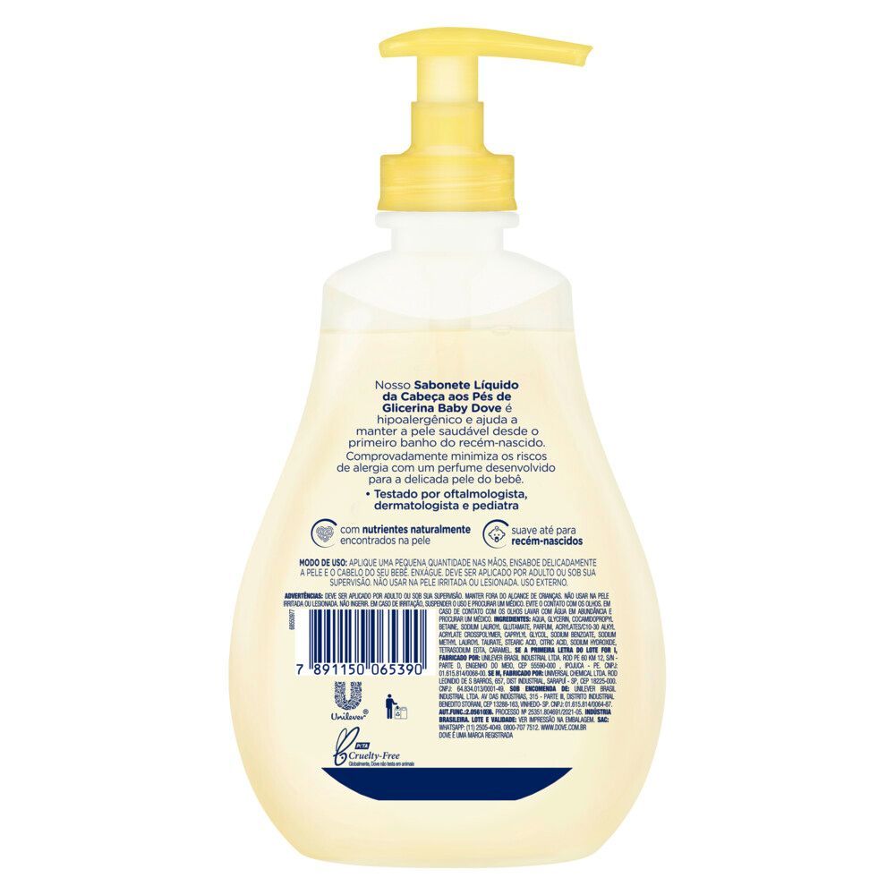 Sabonete Líquido Dove Baby Hidratação Glicerinada da Cabeça aos Pés 400ml O Sabonete Líquido Baby Dove Hidratação Glicerinada é um sabonete líquido corporal suave que deixa a pele sensível do seu bebê