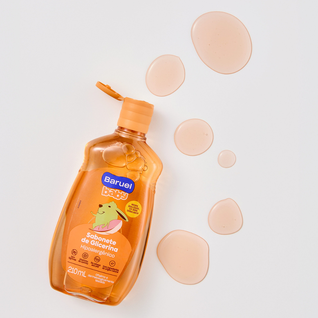 Sabonete Líquido Glicerina Baruel Baby 210ml Principais Características: • Fórmula enriquecida com glicerina, que proporciona hidratação profunda e mantém a pele do bebê macia e protegida. • Produto dermatologicamente testado, ideal para peles sensíveis e delicadas. • Textura suave e delicada que limpa sem agredir, respeitando o equilíbrio natural da pele. Benefícios: • Hidrata e protege a pele contra o ressecamento. • Limpeza eficaz e delicada para o uso diário. • Ajuda a manter a suavidade e o conforto da pele do bebê. Diferenciais do Produto: • Combinação de cuidado e proteção com ingredientes suaves, exclusiva para a pele delicada do bebê. • Produto com pH balanceado, respeitando o pH natural da pele. • Indicado para uso diário, garantindo frescor e bem-estar. Especificações Técnicas: • Peso: 210ml Instruções de Uso: • Aplique sobre a pele molhada do bebê. • Massageie suavemente até formar espuma. • Enxágue completamente. • Pode ser usado diariamente durante o banho. Avisos e Precauções: • Uso externo. • Evitar contato com os olhos; em caso de contato, enxaguar com água em abundância. • Em caso de irritação, suspender o uso e procurar orientação médica. • Manter fora do alcance de crianças. • Armazenar em local fresco e protegido da luz. O que está incluso? • 1 unidade de Sabonete Líquido Glicerina Baruel Baby 210ml ---- DÚVIDAS FREQUENTES ---- Os produtos são originais? Sim. Todos os nossos produtos são originais. Emitem nota fiscal? Sim. Emitimos nota fiscal para todos os pedidos.